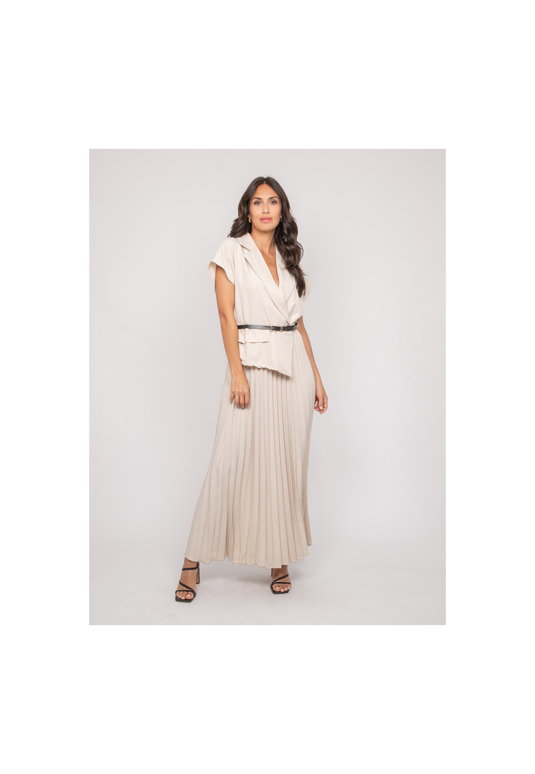 Robe longue plissée avec ceinture INARA