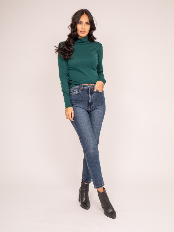 Sous-pull col roulé en maille 100% coton peigné extensible.