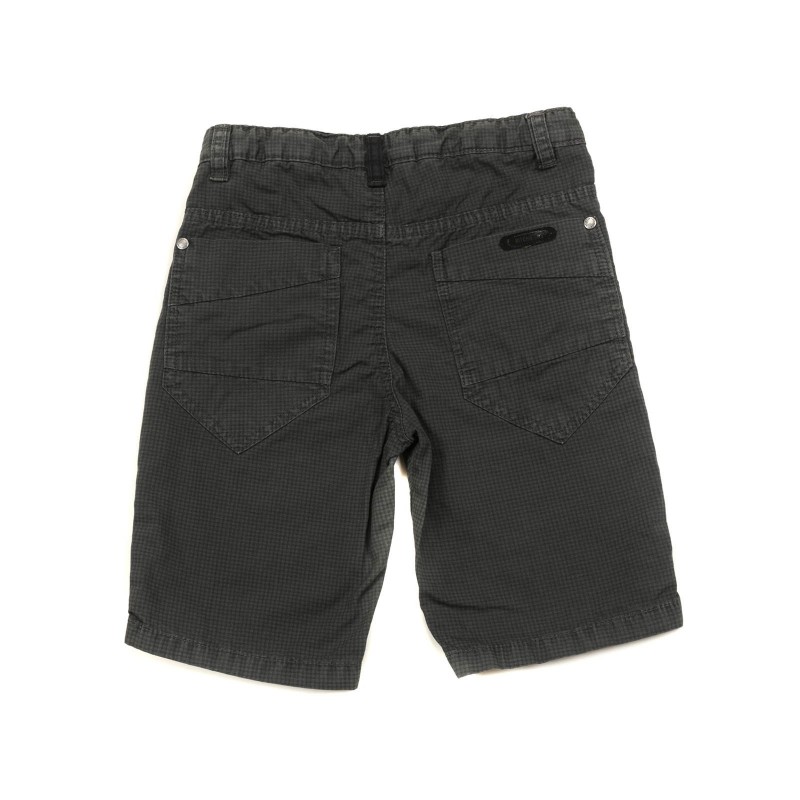 Bermuda 5 poches en coton esprit chino. Toile imprimée avec motifs petits carreaux. Fermeture par zip et bouton à la taille. Ceinture à passants. 2 poches ouvertes rivetées et 1 poche ticket devant. 2 poches plaquées rivetées au dos. 100% coton. Lavage en machine à 30°.