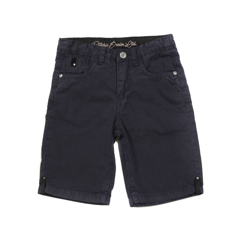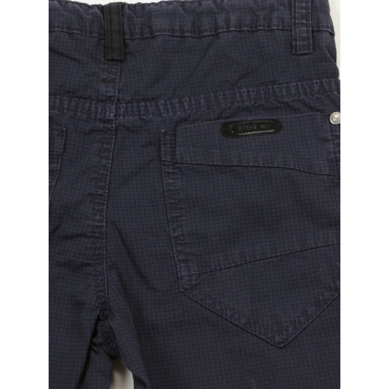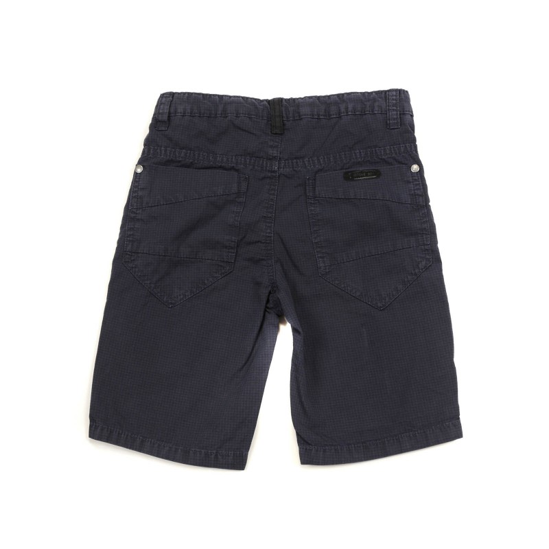Bermuda 5 poches en coton esprit chino. Toile imprimée avec motifs petits carreaux. Fermeture par zip et bouton à la taille. Ceinture à passants. 2 poches ouvertes rivetées et 1 poche ticket devant. 2 poches plaquées rivetées au dos. 100% coton. Lavage en machine à 30°.