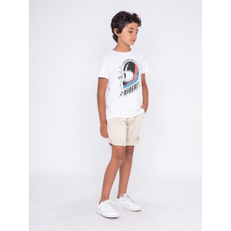 Ce bermuda chino Ritchie Jeans se démarque par sa matière coton confortable et se décline en cinq coloris pour accompagner vos garçons toute la belle saison. Vous pourrez l'associer à un sweatshirt à capuche et un tee shirt sérigraphié de notre collection pour un look casual tendance.