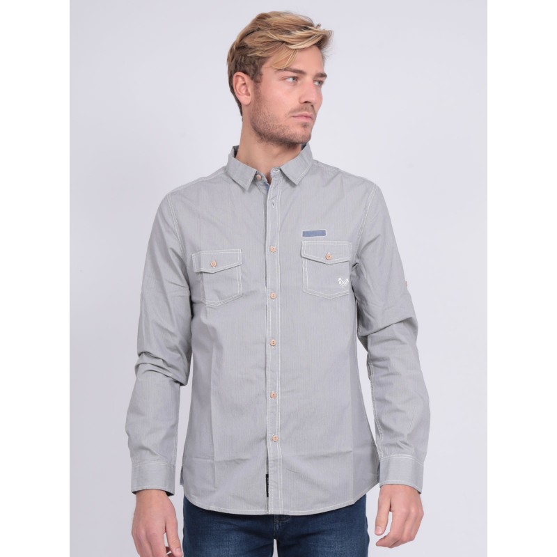 Conçue en pur coton léger, cette chemise à manches longues Ritchie Jeans se présente dans une version inspirée des uniformes de travail avec ses poches poitrine à rabat et ses boutons sur le devant. L'ensemble s'habille d'un motif fondu rayé, décliné en blanc sur une toile de fond grise. Portez cette chemise avec un pantalon en denim à la coupe slim pour un style épuré très tendance.