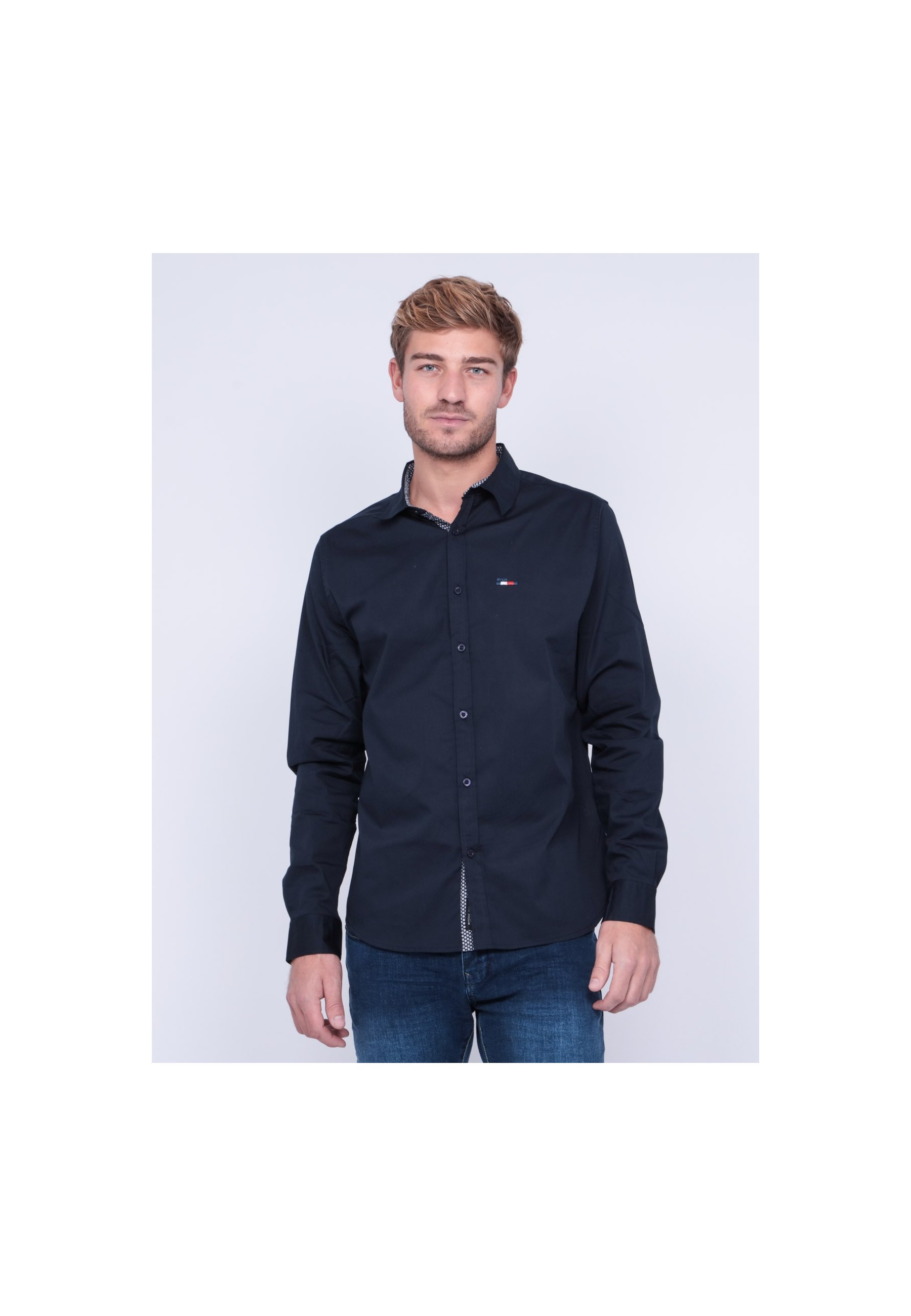 Cette chemise bleu marine Ritchie Jeans vous séduira par sa simplicité et sa qualité, soulignées par une couleur élégante. Sa composition en coton stretch lui confère un confort inégalable, et un tombé parfait, avec une découpe arrondie à la base et des manches longues à poignets boutonnés. La pièce est surmontée d'une encolure classique, prolongée par une rangée de petits boutons ton sur ton. Faites ressortir les nuances de cette chemise en l'accordant à un pantalon en jean et un blouson.