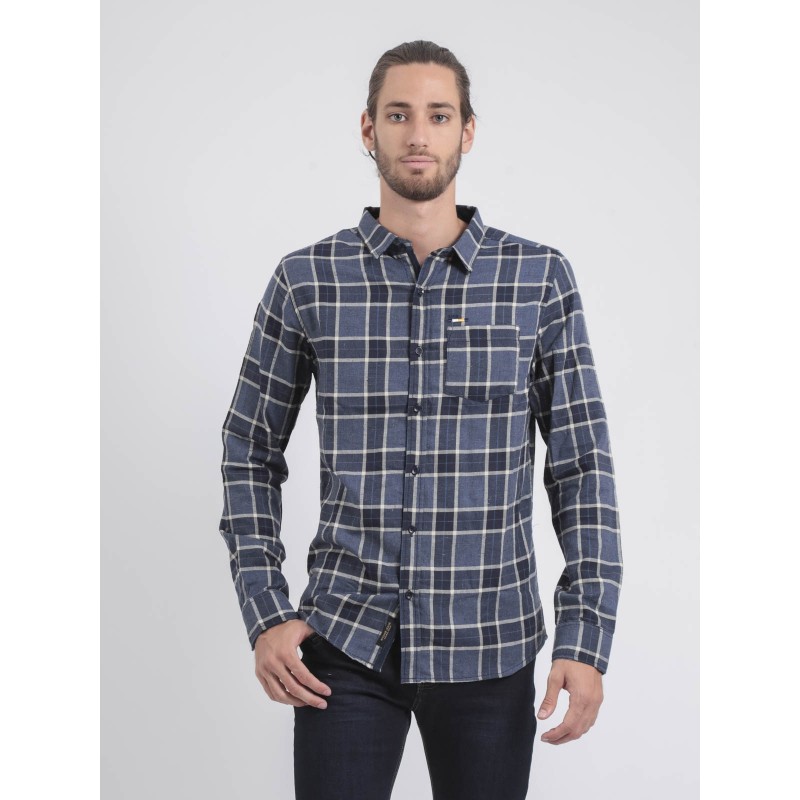 Cette chemise homme au col classique est confectionnée en coton twill doux et confortable. Elle se distingue par son motif de carreaux pour une touche graphique et décontractée. Cette chemise à la coupe droite s'accordera parfaitement avec un jean et pourra être portée à même la peau comme en surchemise.