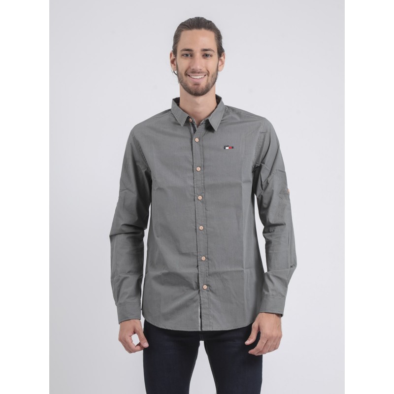 Cette chemise droite Ritchie Jeans est rehaussée de fines rayures très claires. Elle revisite la coupe casual de la chemise avec des manches longues, un petit col français et une rangée de petits boutons contrastés devant. Insufflez de l'originalité à vos tenues de ville en accordant cette chemise à manches pour homme à un jean destroy.
