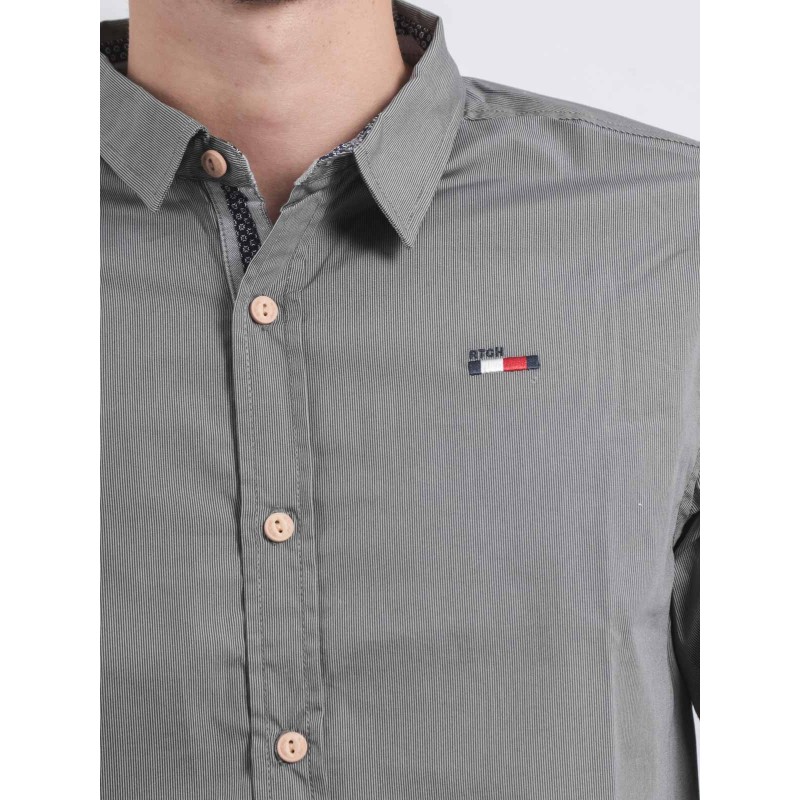 Cette chemise droite Ritchie Jeans est rehaussée de fines rayures très claires. Elle revisite la coupe casual de la chemise avec des manches longues, un petit col français et une rangée de petits boutons contrastés devant. Insufflez de l'originalité à vos tenues de ville en accordant cette chemise à manches pour homme à un jean destroy.