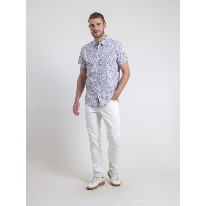 Cette chemisette Ritchie Jeans réinterprète une coupe classique avec un motif original en all-over. Facile à porter au quotidien, elle offre une allure décontractée avec des manches courtes et une petite encolure française. Le modèle s'habille d'un petit motif contrastant. Mettez en avant le style de cette chemise avec un bermuda décontracté et une paire de baskets.