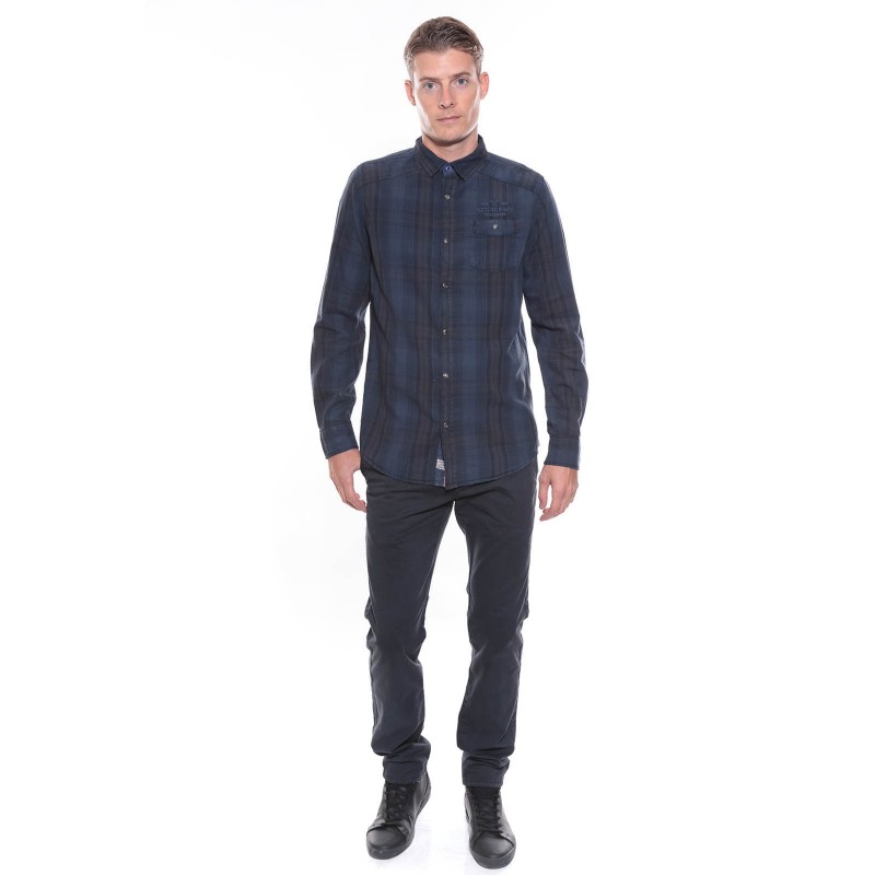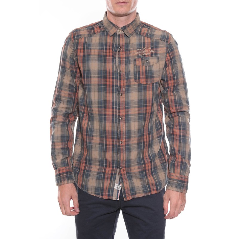 Chemise à carreaux tissés en pur coton, collection automne - hiver. Fermeture par boutons pression. Coupe droite et col classique à pointes libres. 1 poche poitrine boutonnée. Empiècement épaules. Base arrondie. 100% coton. Lavage en machine à 30°.