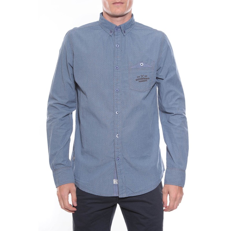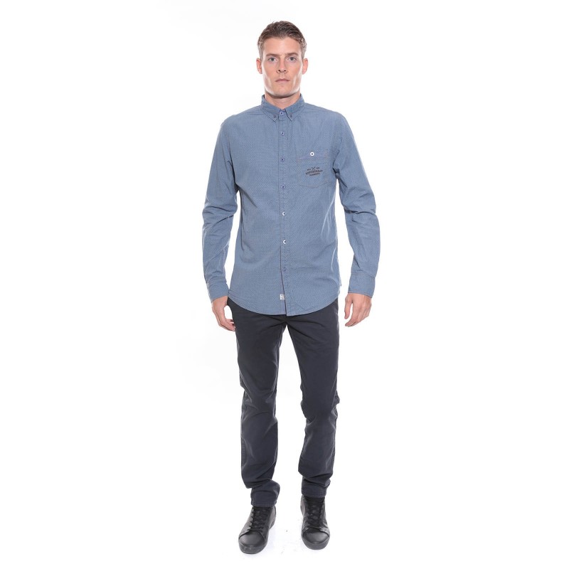 Chemise à pois tissés "esprit détente" en pur coton, collection automne - hiver. Fermeture par boutons. Coupe droite et col classique à pointes boutonnées. 1 poche poitrine boutonnée. Base arrondie. 100% coton. Lavage en machine à 30°.