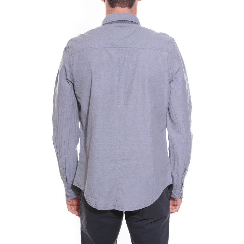 Chemise à motifs tissés "esprit détente" en pur coton, collection automne-hiver. Fermeture par boutons. Coupe droite et col classique à pointes libres. 1 poche poitrine boutonnée. Base arrondie. 100% coton. Lavage en machine à 30°.