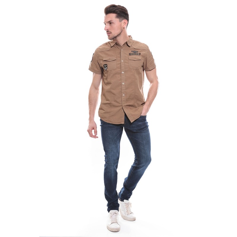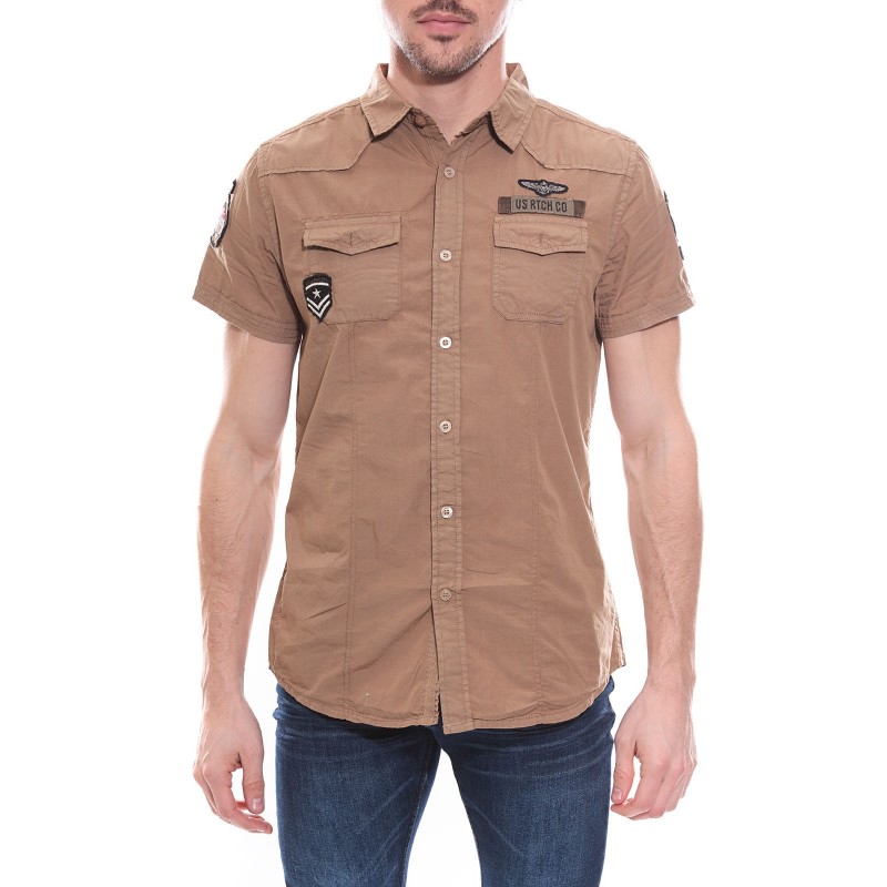 Détails produits Manches courtes  Col classique, pointes libres  Coupe droite  2 poches à rabats boutonnés poitrine  Ecussons brodés sur manche et poitrine   Composition et entretien 100% coton  Lavage en machine à 30°... En savoir plus >