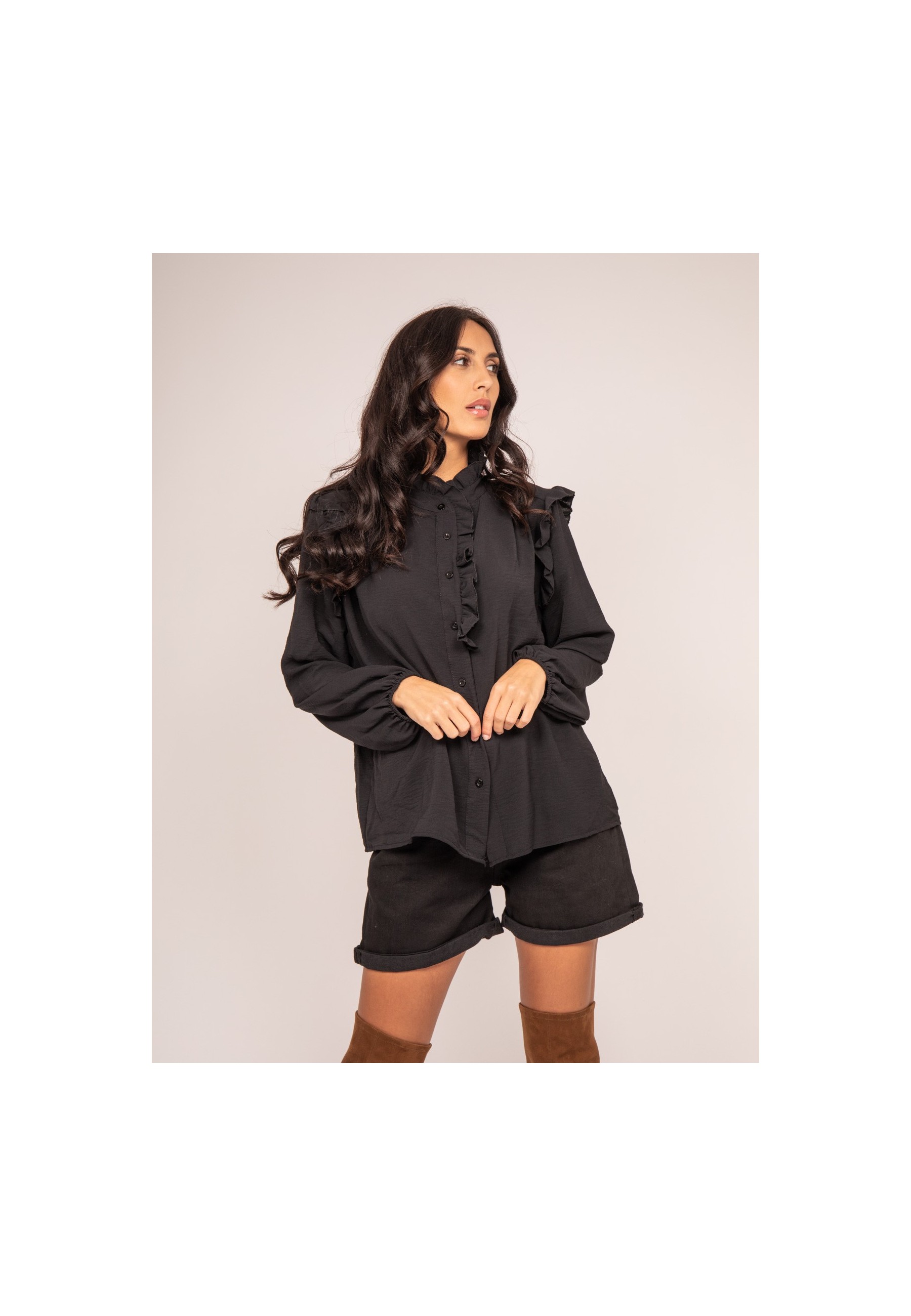 Détails produit Manches longues Col montant à volants Fermeture boutonnée Coupe droite Poignets élastiqués Composition et entretien 95% polyester, 5% élasthanne Lavage en machine à 30° Conseils taille Le... En savoir plus >