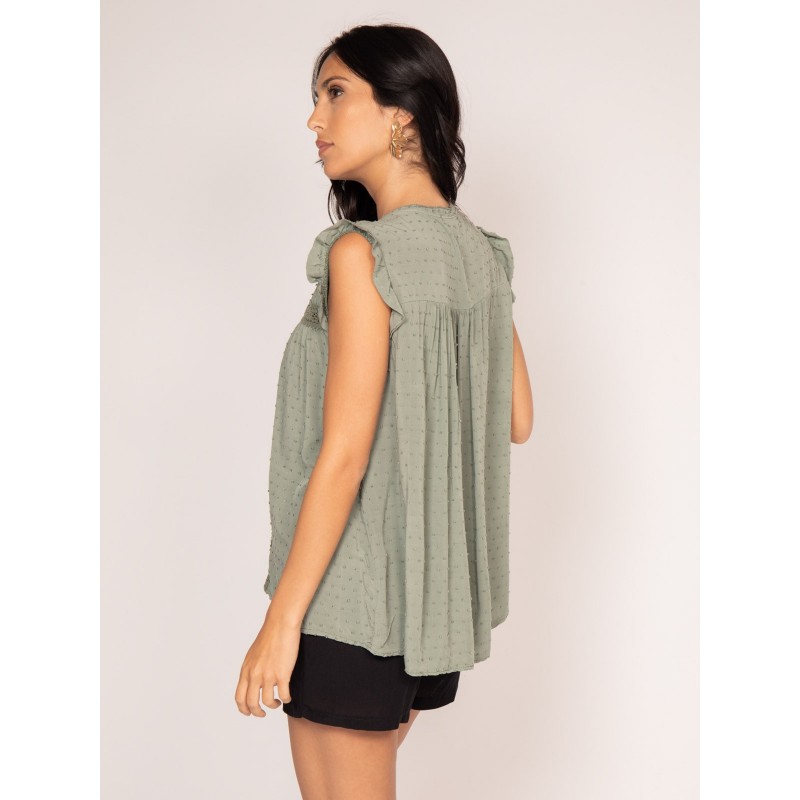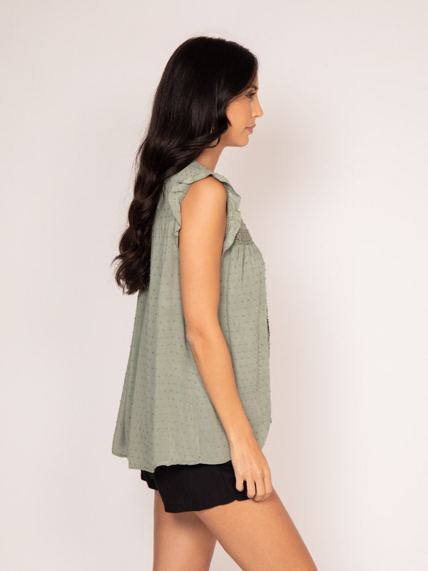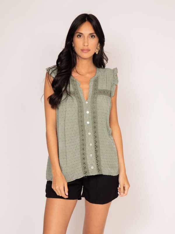 Cette chemisette au col froufrou Dona Lisa est coupée dans une matière fluide et légère, pour une allure sensuelle et audacieuse. Les détails en broderies anglaises ajoutent une dernière touche tendance à la pièce. Faites preuve d'audace en associant cette chemise à plumetis pour femme à une jupe courte en jean et une paire de sandales.