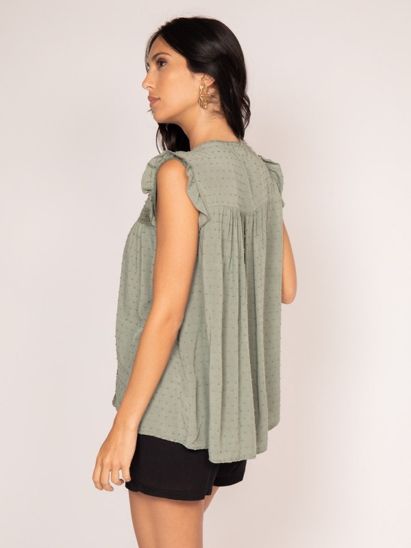 Cette chemisette au col froufrou Dona Lisa est coupée dans une matière fluide et légère, pour une allure sensuelle et audacieuse. Les détails en broderies anglaises ajoutent une dernière touche tendance à la pièce. Faites preuve d'audace en... En savoir plus >