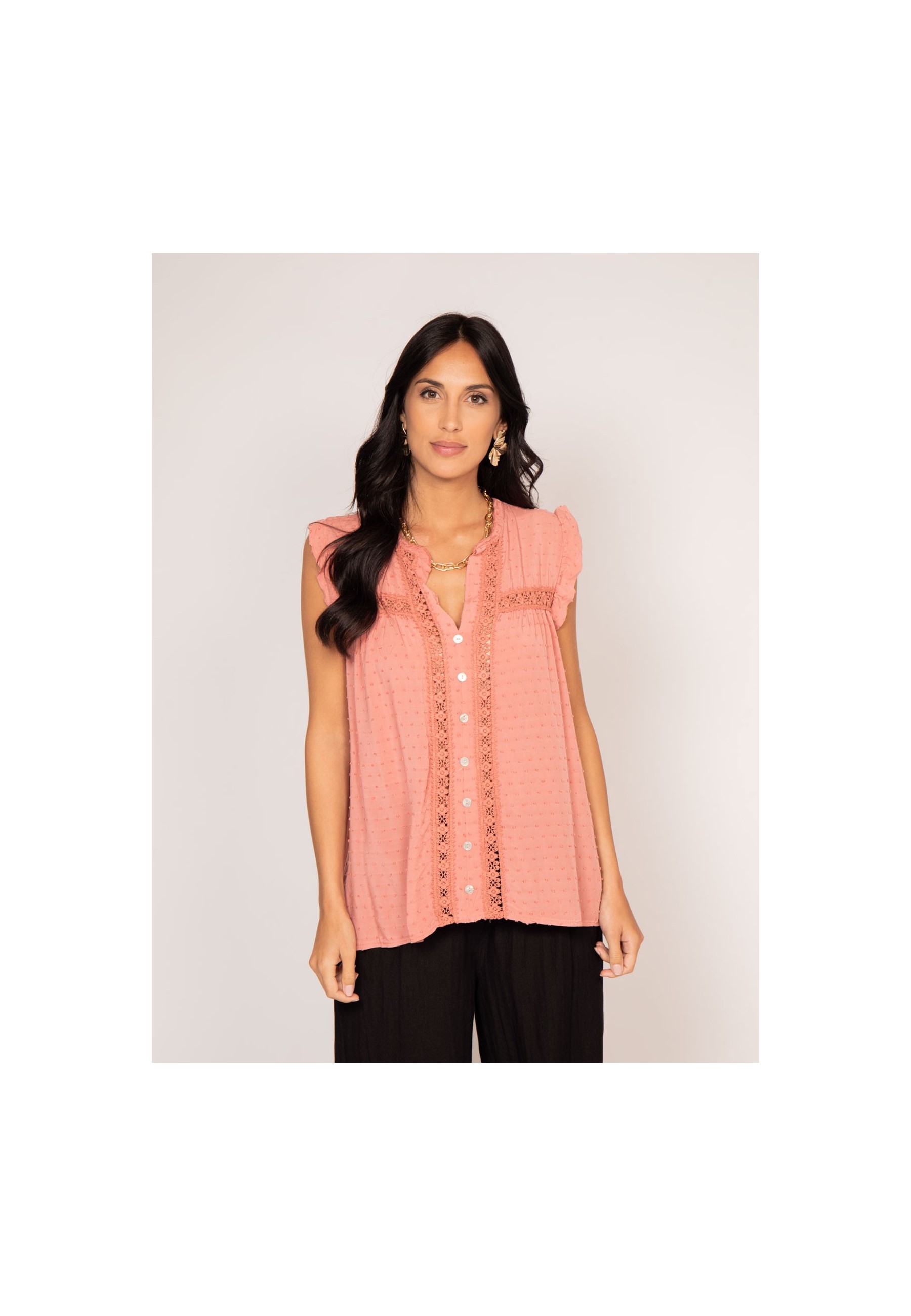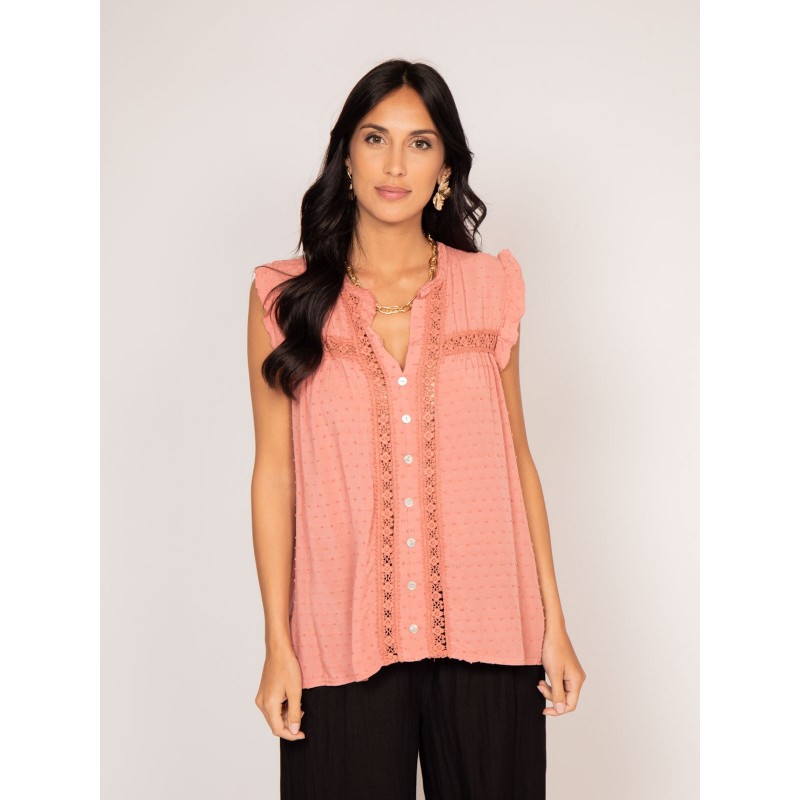 Cette chemisette au col froufrou Dona Lisa est coupée dans une matière fluide et légère, pour une allure sensuelle et audacieuse. Les détails en broderies anglaises ajoutent une dernière touche tendance à la pièce. Faites preuve d'audace en associant cette chemise à plumetis pour femme à une jupe courte en jean et une paire de sandales.