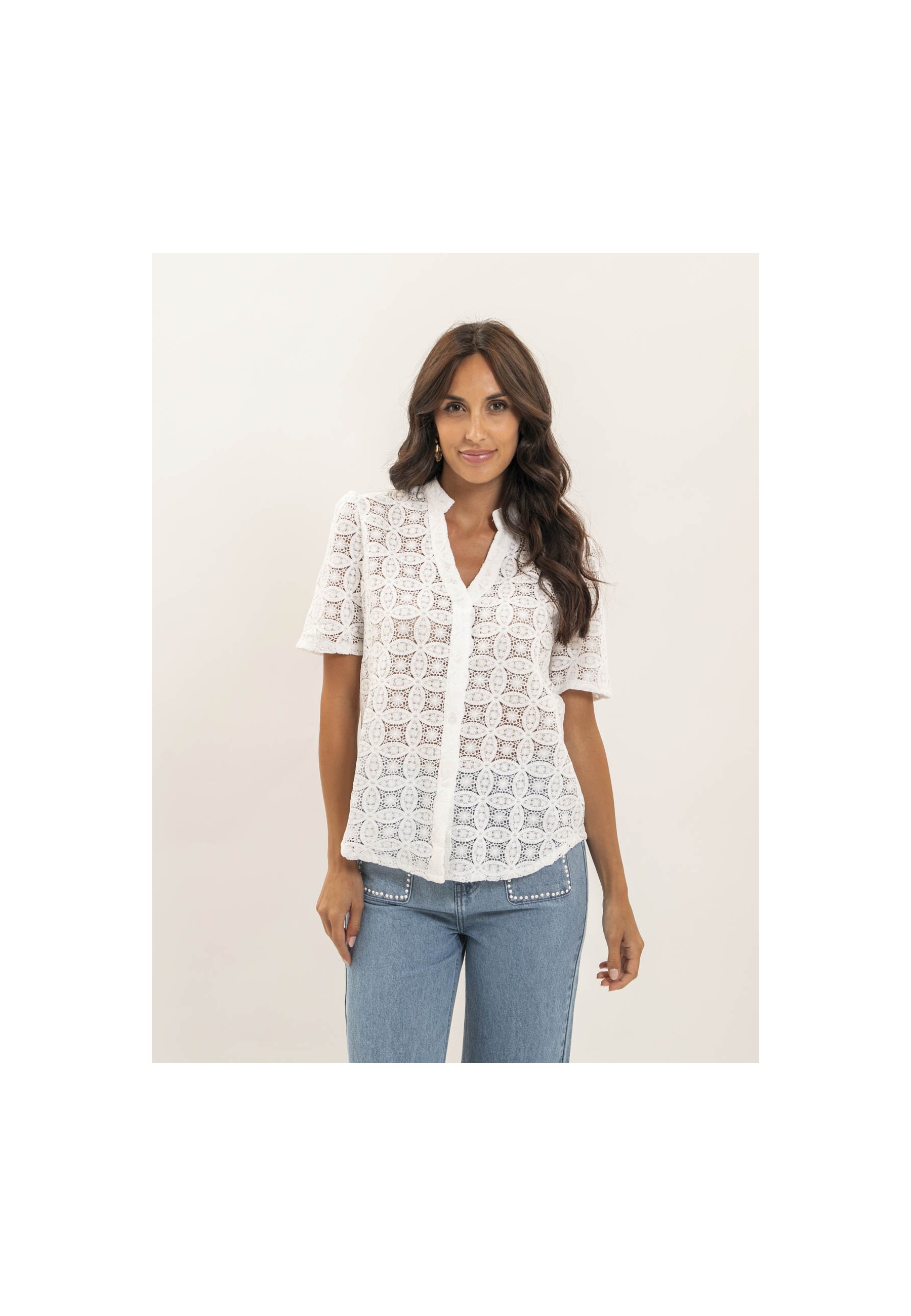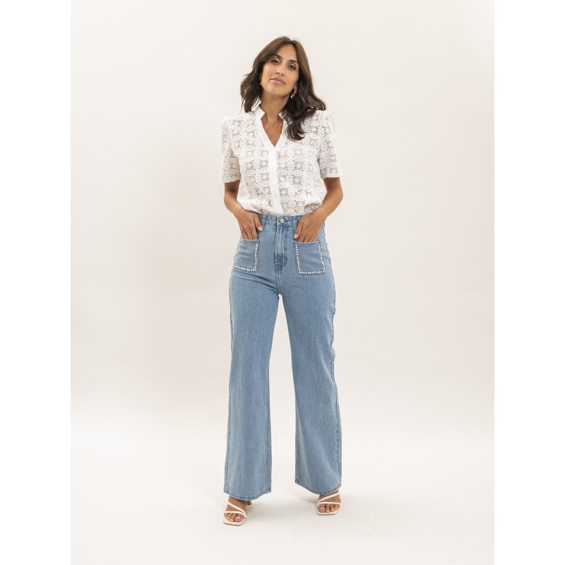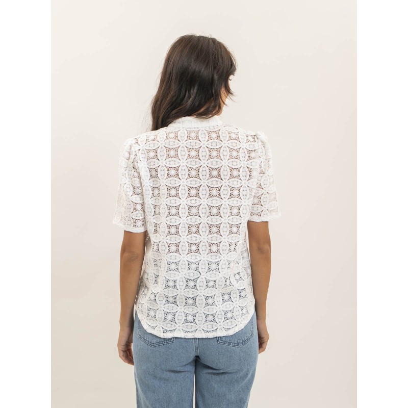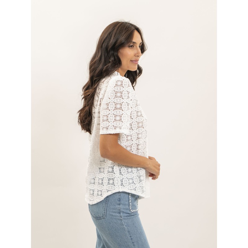 Sublimez vos tenues estivales avec cette blouse élégante au design délicatement ajouré. Son tissu travaillé dans les moindres détails apporte une touche de légèreté et de sophistication, idéale pour la saison printemps-été. Un must-have féminin et raffiné.