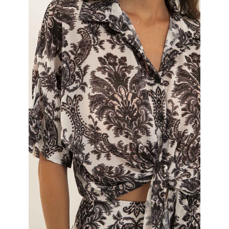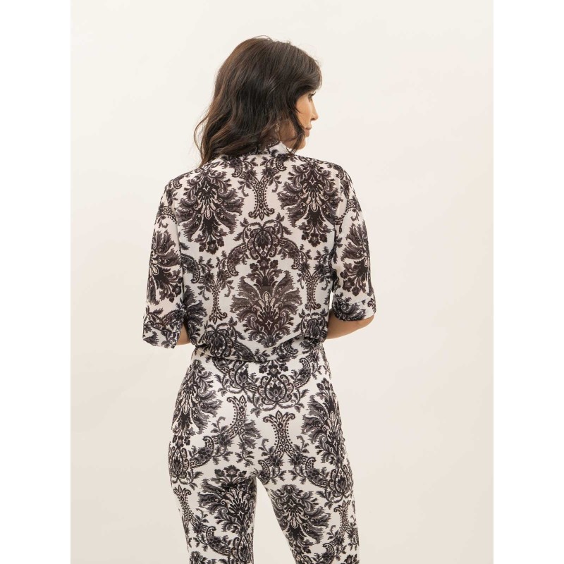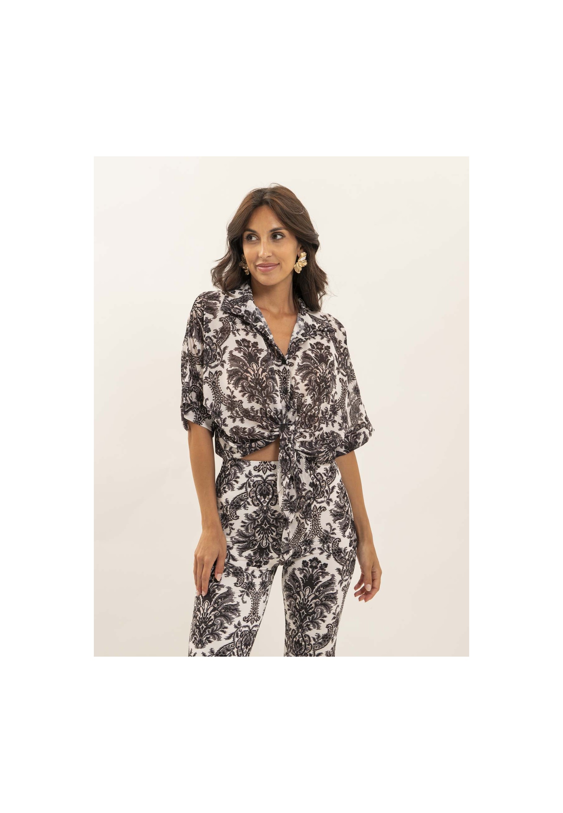 Apportez une touche sophistiquée et audacieuse à votre garde-robe printemps-été avec cette chemise fluide et légère. Ses motifs baroques offrent un style unique et intemporel, parfait pour sublimer vos tenues quotidiennes ou vos occasions spéciales. Polyvalente et élégante, elle se porte nouée pour un look moderne et féminin.