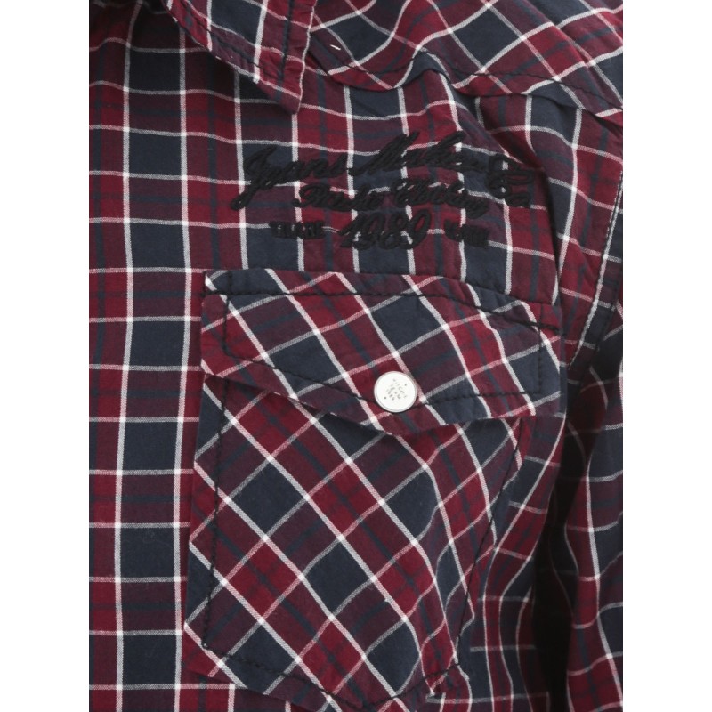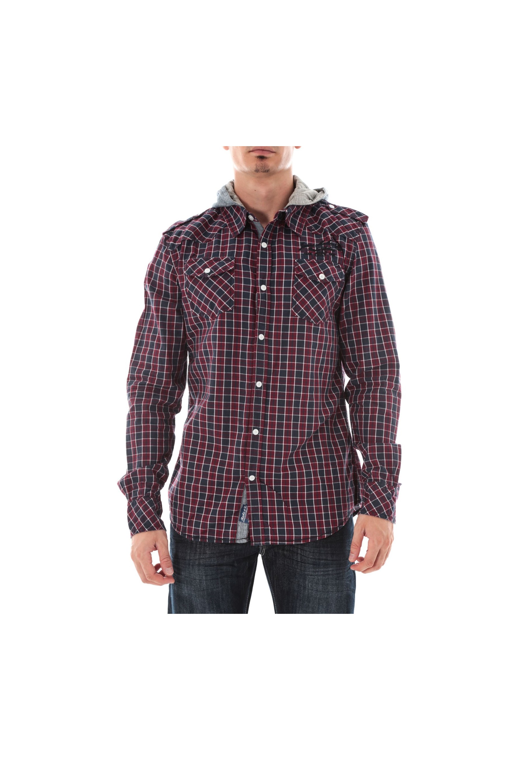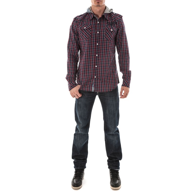 Chemise à carreaux tissés "esprit denim" avec capuche et coudières coordonnées. Capuche amovible par boutons. Col à pointes libres. Fermeture par boutons pressions. 2 poches plaquées à rabats pressionnés. Empiècement épaules. Epaulettes pressionnées. Broderie Ritchie au dessus de la poche gauche. Petite étiquette siglée Ritchie & Co au dos. Base arrondie. 100% coton. Lavage en machine à 30°