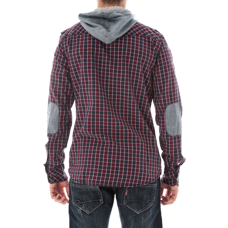 Chemise à carreaux tissés "esprit denim" avec capuche et coudières coordonnées. Capuche amovible par boutons. Col à pointes libres. Fermeture par boutons pressions. 2 poches plaquées à rabats pressionnés. Empiècement épaules. Epaulettes... En savoir plus >