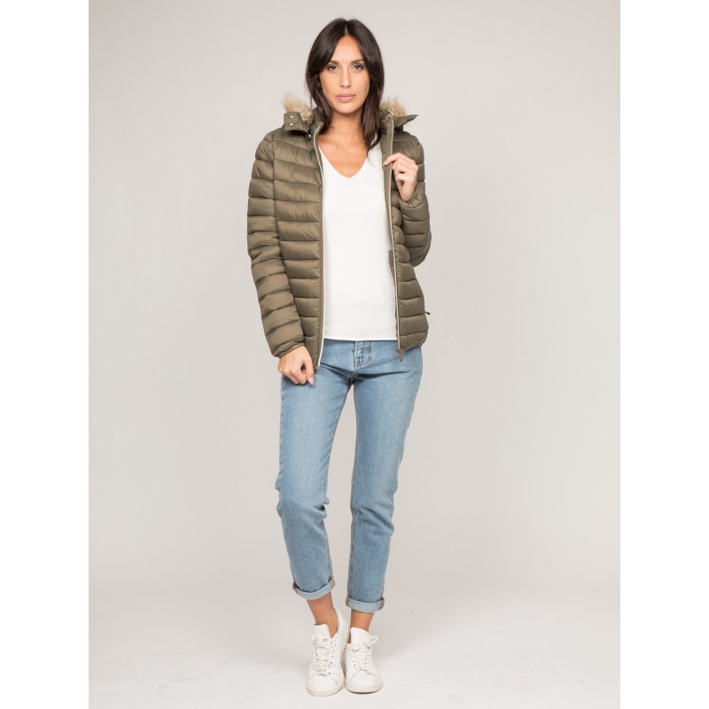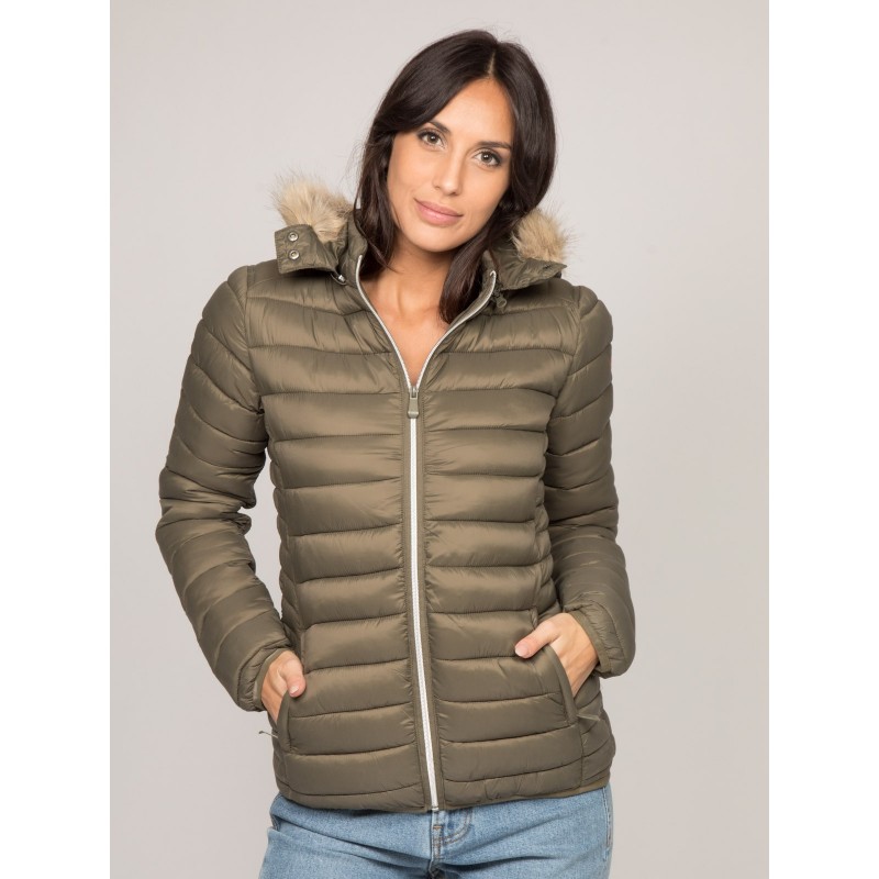 Doudoune légère Dona Lisa avec capuche amovible en imitation fourrure. Cette doudoune matelassée au tissu déperlant est un incontournable de la saison!