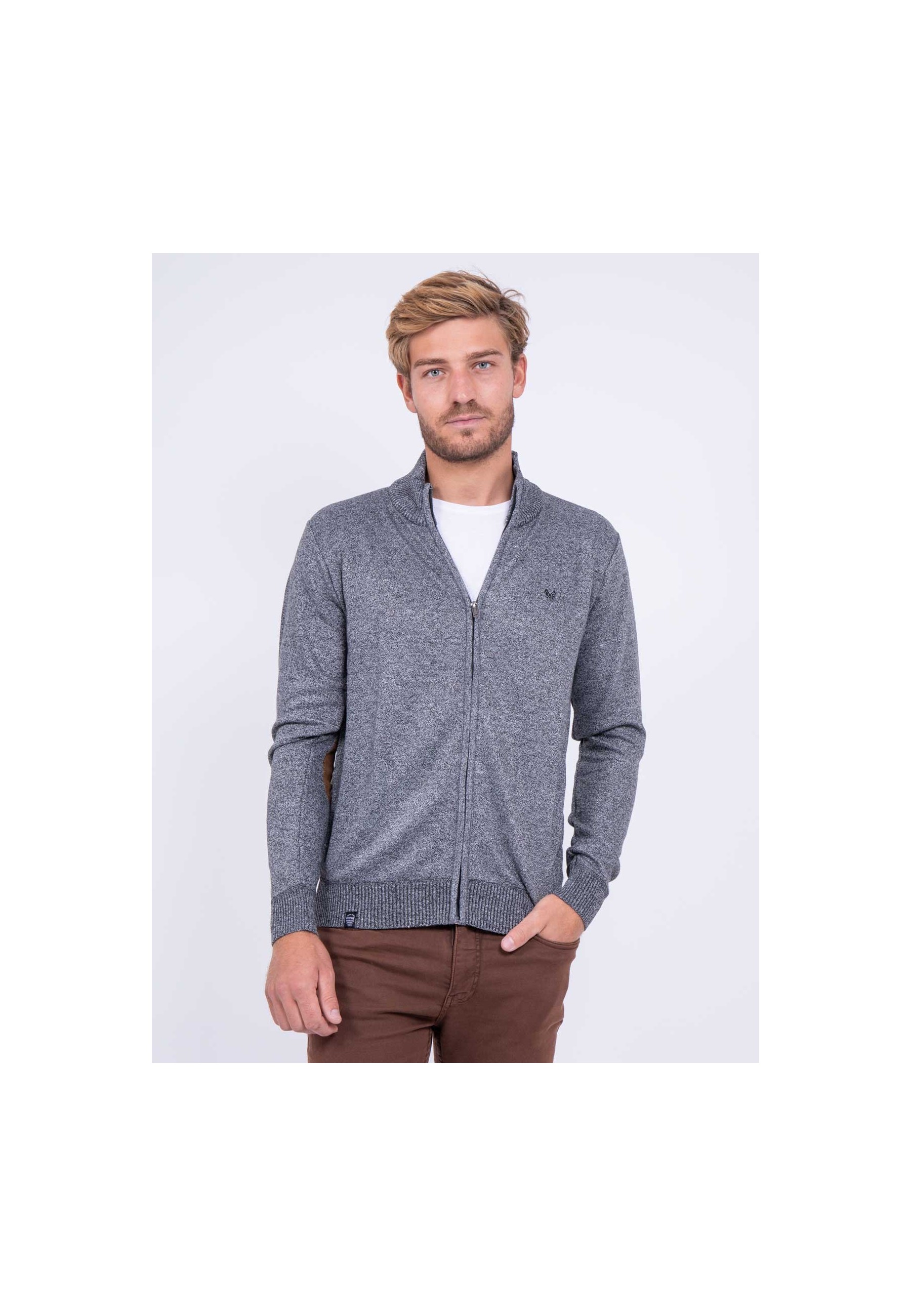Ce gilet Ritchie Jeans à la fermeture zippée twiste allure tendance et style sportswear grâce à ses coudières contrastées. Ce gilet pour homme au col montant et à la coupe droite ajustée promet confort et douceur. Associé à un jean de notre collection, ce gilet en maille fine vous garantit un look casual tendance.