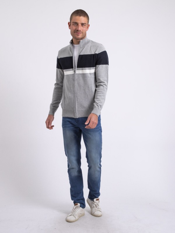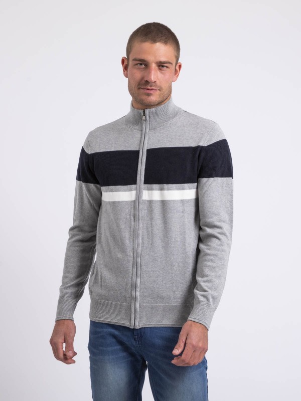 Ce produit allie style et confort avec son col montant et sa fermeture zippée. Les bords côtes contrastants au niveau du col, de la base et des poignets ajoutent une touche sophistiquée. Les bandes horizontales contrastantes apportent une note... En savoir plus >