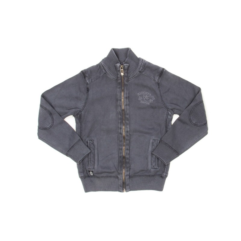 Gilet garçon, col montant, pur coton, avec coudières ton sur ton. 2 poches ouvertes. Fermeture par zip. Mélange de mailles fines et molleton léger avec jeu de surpiqûres apparentes ton sur ton. Coudières et empiècements épaule en molleton. Finitions bords cotes. Broderie Ritchie ton sur ton sur poitrine. Etiquette siglée Ritchie cousue à la base. 100% coton. Lavage en machine à 30°.
