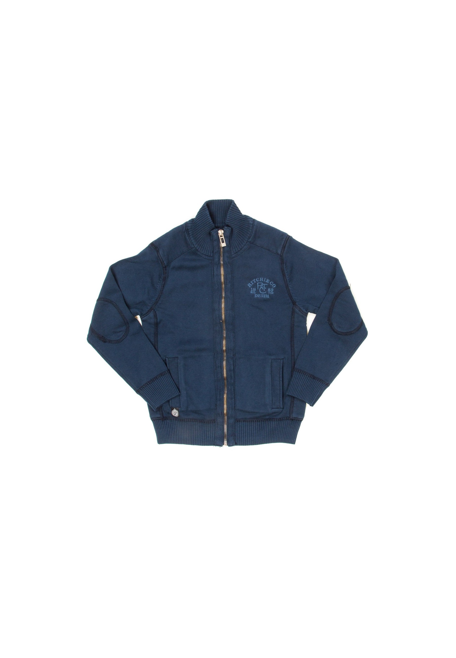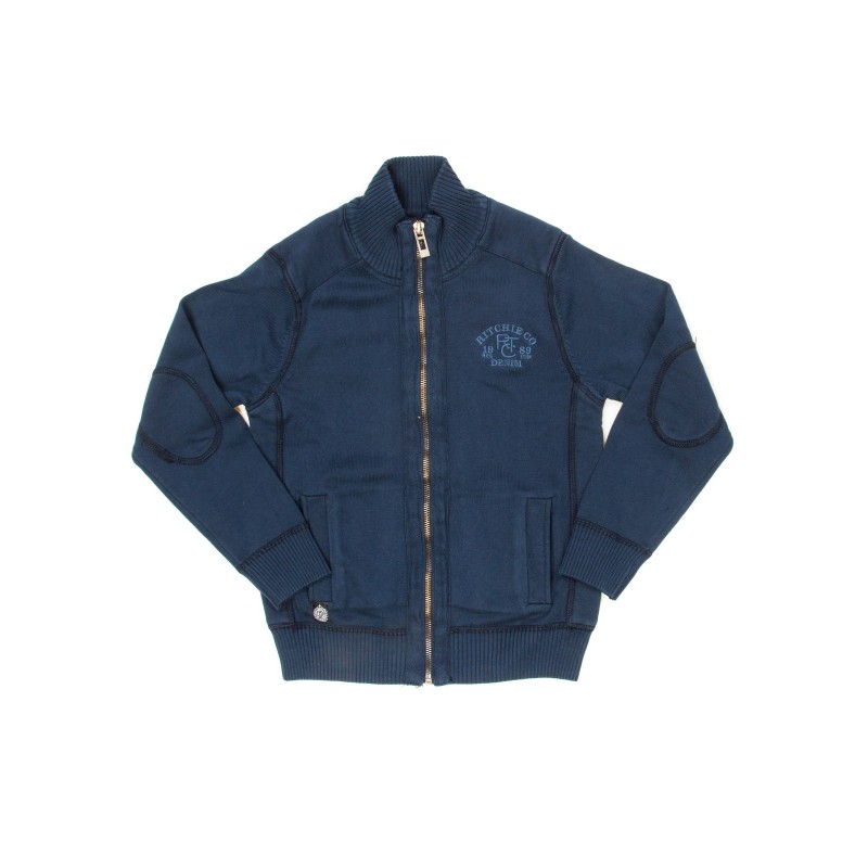 Gilet garçon, col montant, pur coton, avec coudières ton sur ton. 2 poches ouvertes. Fermeture par zip. Mélange de mailles fines et molleton léger avec jeu de surpiqûres apparentes ton sur ton. Coudières et empiècements épaule en molleton. Finitions bords cotes. Broderie Ritchie ton sur ton sur poitrine. Etiquette siglée Ritchie cousue à la base. 100% coton. Lavage en machine à 30°.
