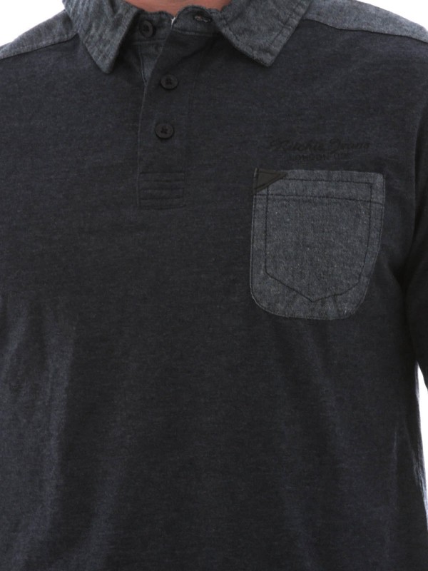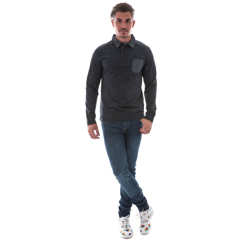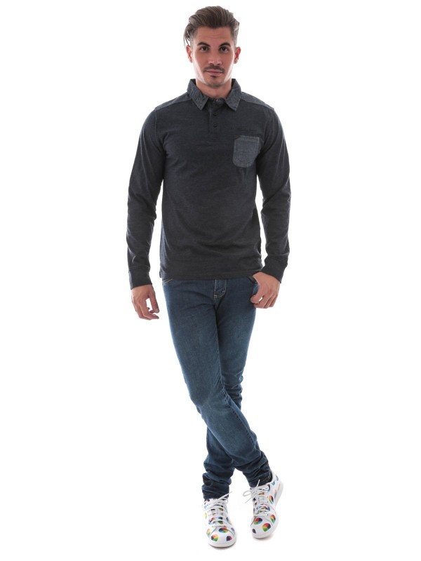 Polo manches longues "esprit city " à effet bi-matière. Col à 3 boutons. Petite poche ouverte coté coeur. Empiècement épaulettes. Finition bords cotes aux poignets. Base droite avec fentes latérales. 65% coton, 35% polyester. Lavage en machine à 30°.