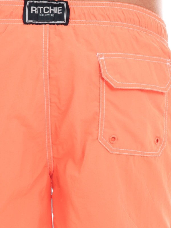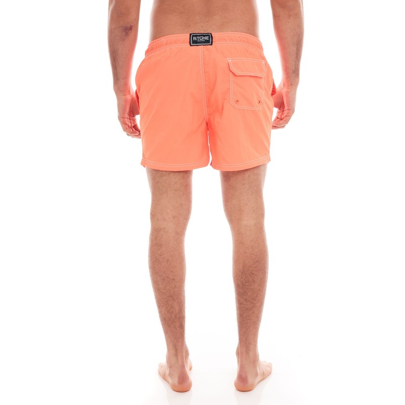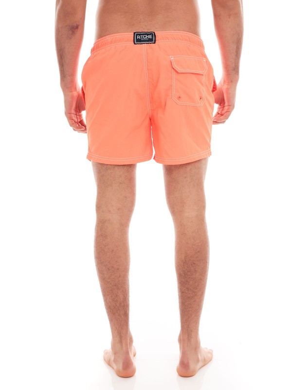 Short de bain uni fluo. Très apprécié pour son séchage rapide, ce short de bain se décline en 3 coloris. Taille élastiquée. Slip intérieur en maille filet. Fermeture par cordon de serrage extérieur. 2 poches ouvertes et 1 poche arrière plaquée avec rabat à fermeture scratch et rivets de vidange. Surpiqûres apparentes. Etiquette siglée Ritchie Beachwear cousue sur la ceinture au dos. 100% polyamide. Lavage en machine à 30°.