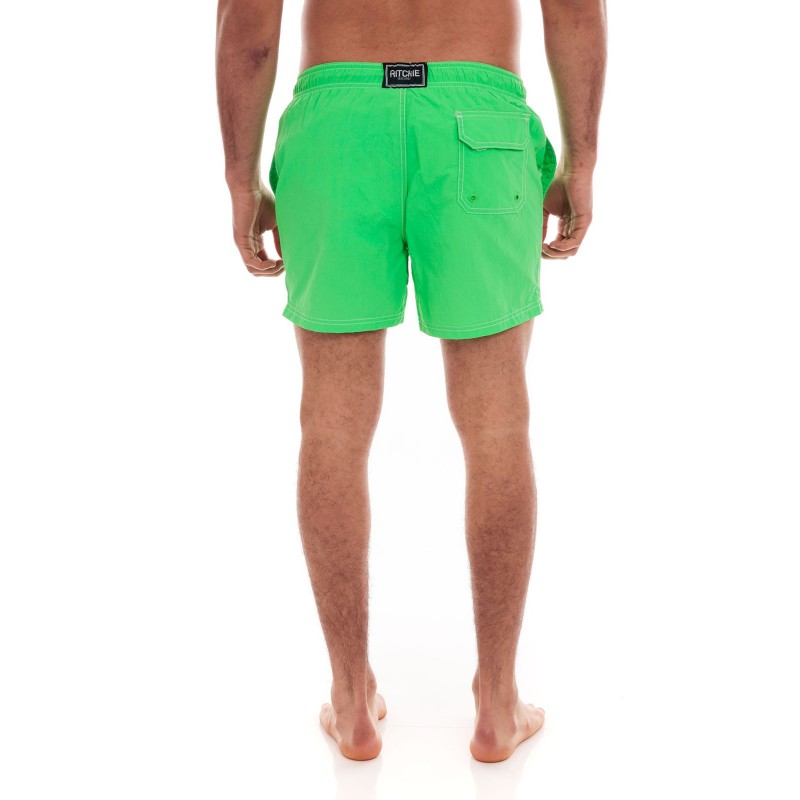 Short de bain uni fluo. Très apprécié pour son séchage rapide, ce short de bain se décline en 3 coloris. Taille élastiquée. Slip intérieur en maille filet. Fermeture par cordon de serrage extérieur. 2 poches ouvertes et 1 poche arrière plaquée avec rabat à fermeture scratch et rivets de vidange. Surpiqûres apparentes. Etiquette siglée Ritchie Beachwear cousue sur la ceinture au dos. 100% polyamide. Lavage en machine à 30°.