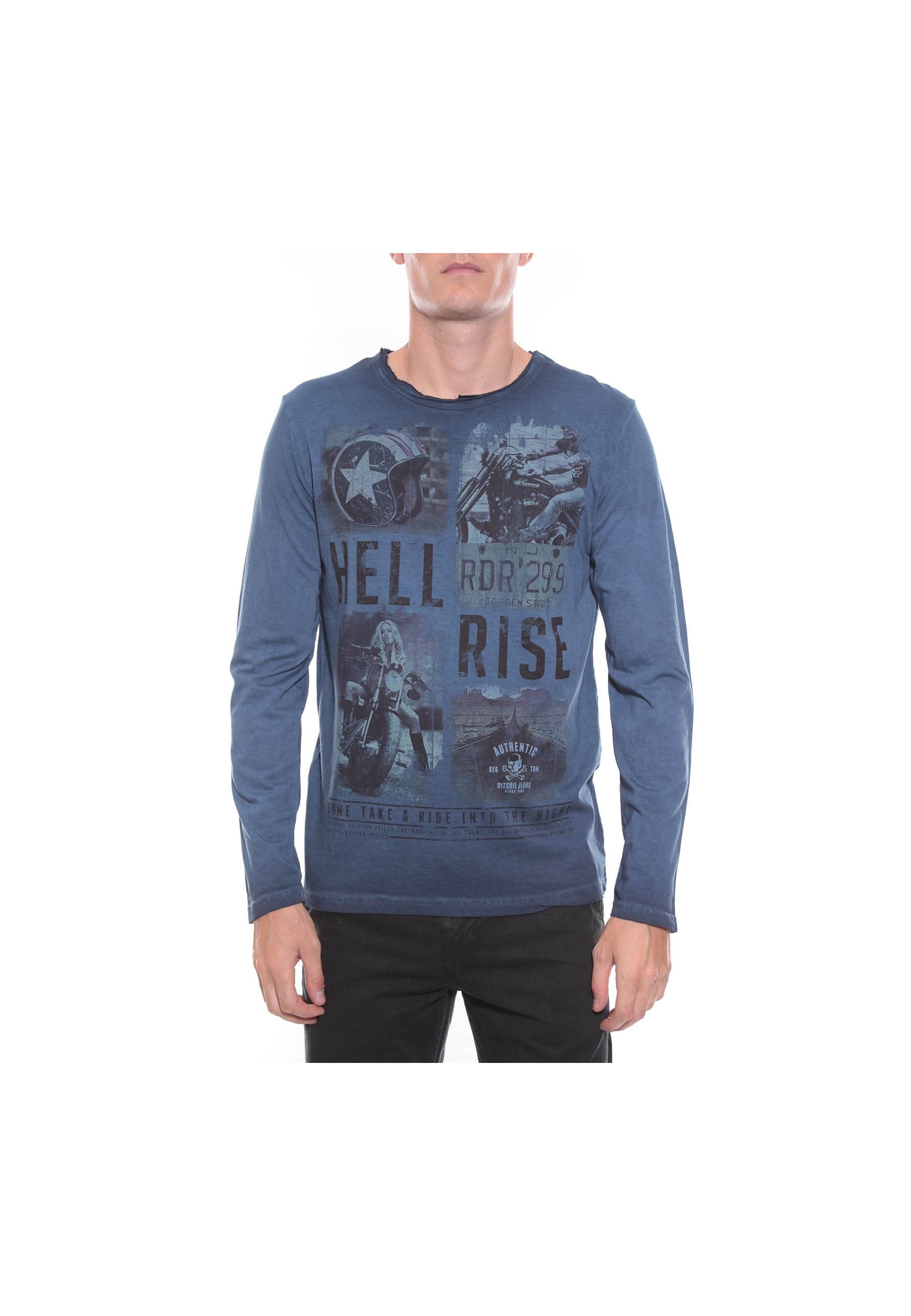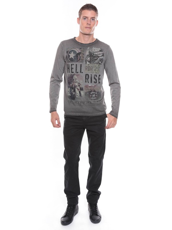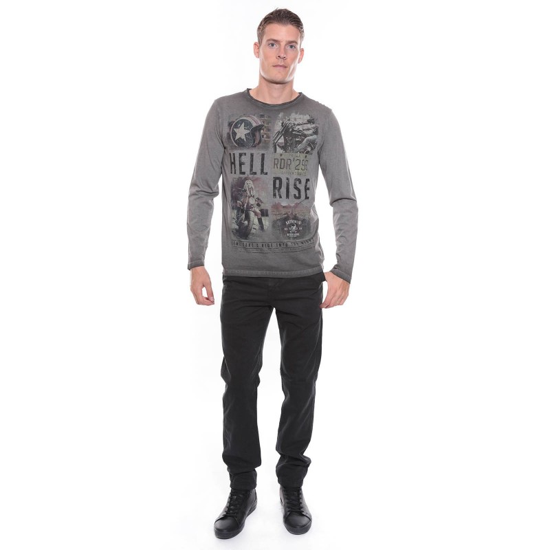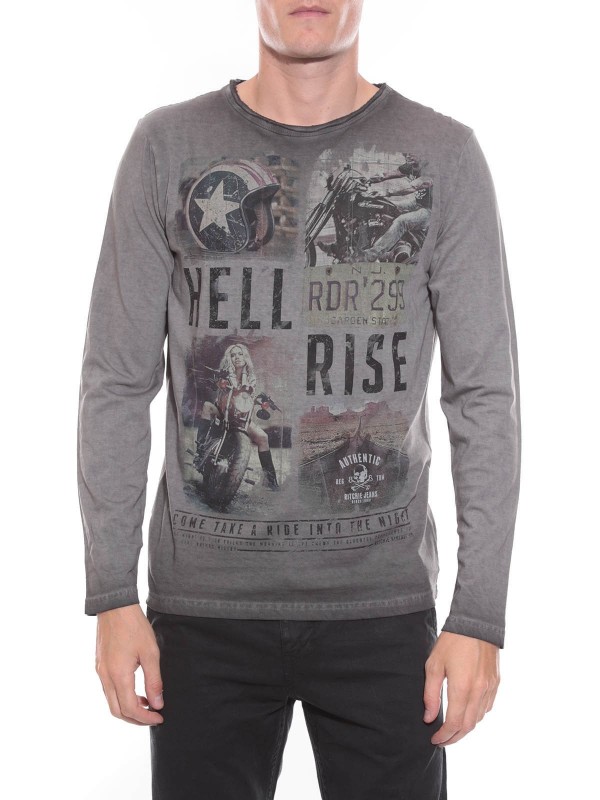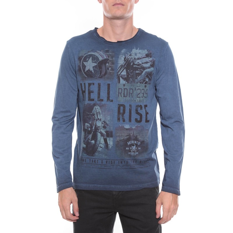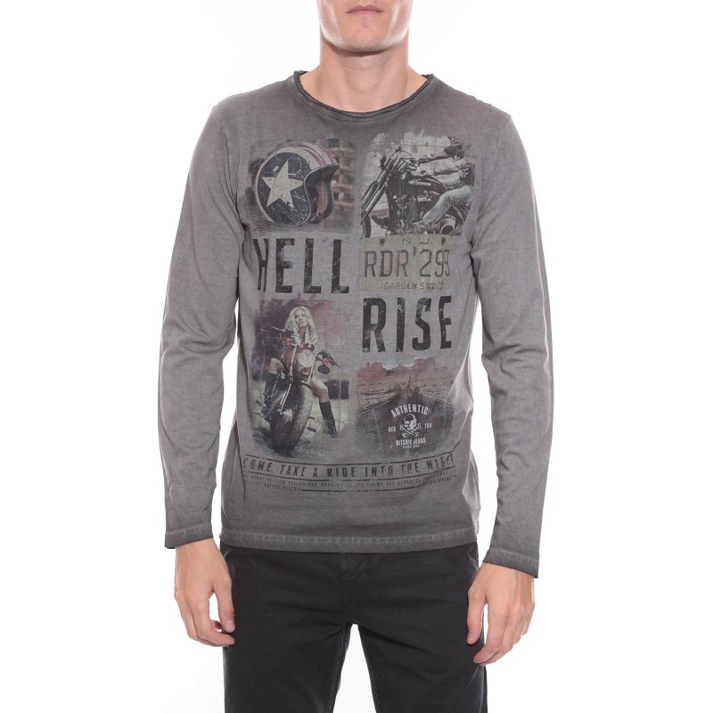 T-shirt imprimé vintage, manches longues, col rond finition à cru, en jersey pur coton. Finitions droites aux manches et à la base. 100% coton. Lavage en machine à 30°.