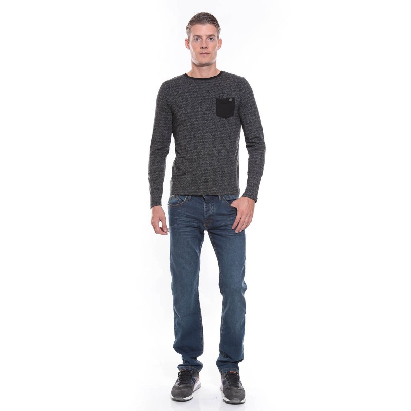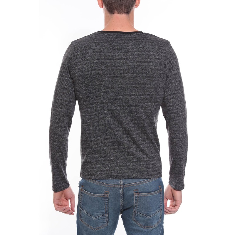 T-shirt manches longues à rayures, col rond. Empiècement nylon aux épaules. Petite poche fantaisie coté coeur. Finitions droites aux manches et à la base. 60% coton, 40% polyester. Lavage en machine à 30°.