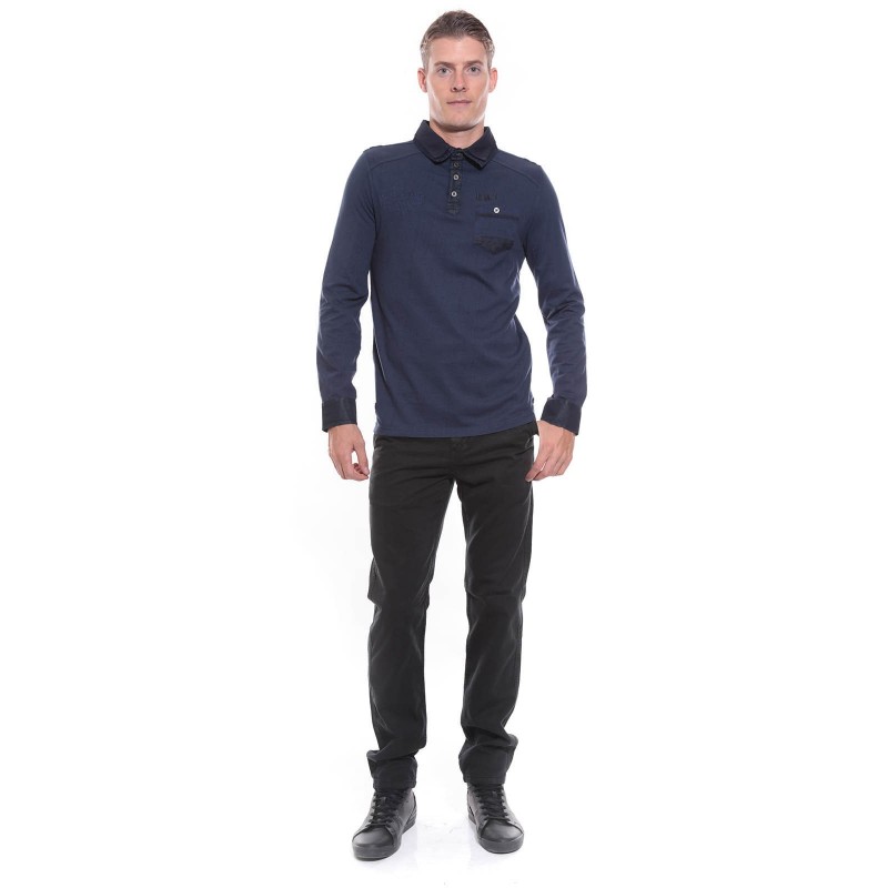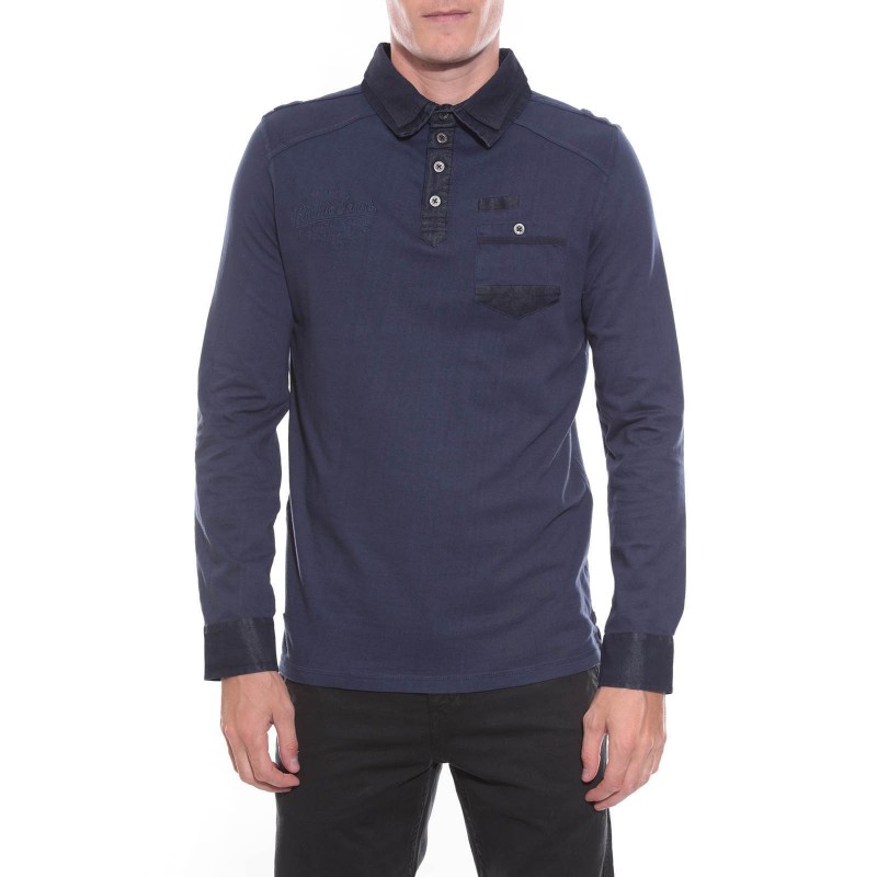 Polo manches longues "esprit détente" en coton jersey avec double col superposé. Col 4 boutons métal. Poche boutonnée côté coeur. Broderie ton sur ton Ritchie coté droit. Poignets boutonnés . Base droite avec fentes latérales. 100% coton. Lavage en machine à 30°.