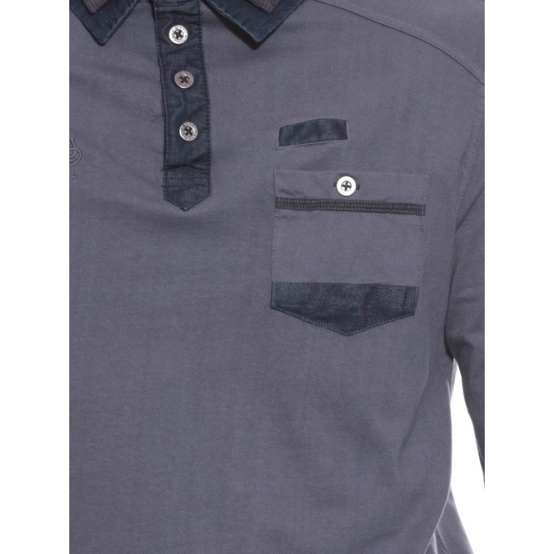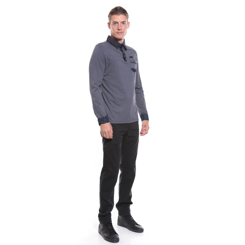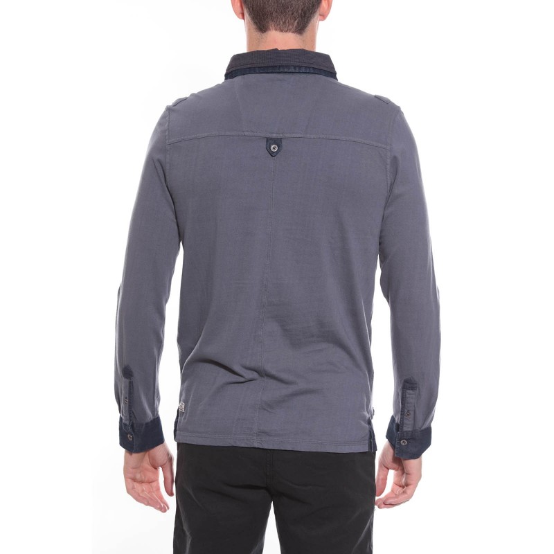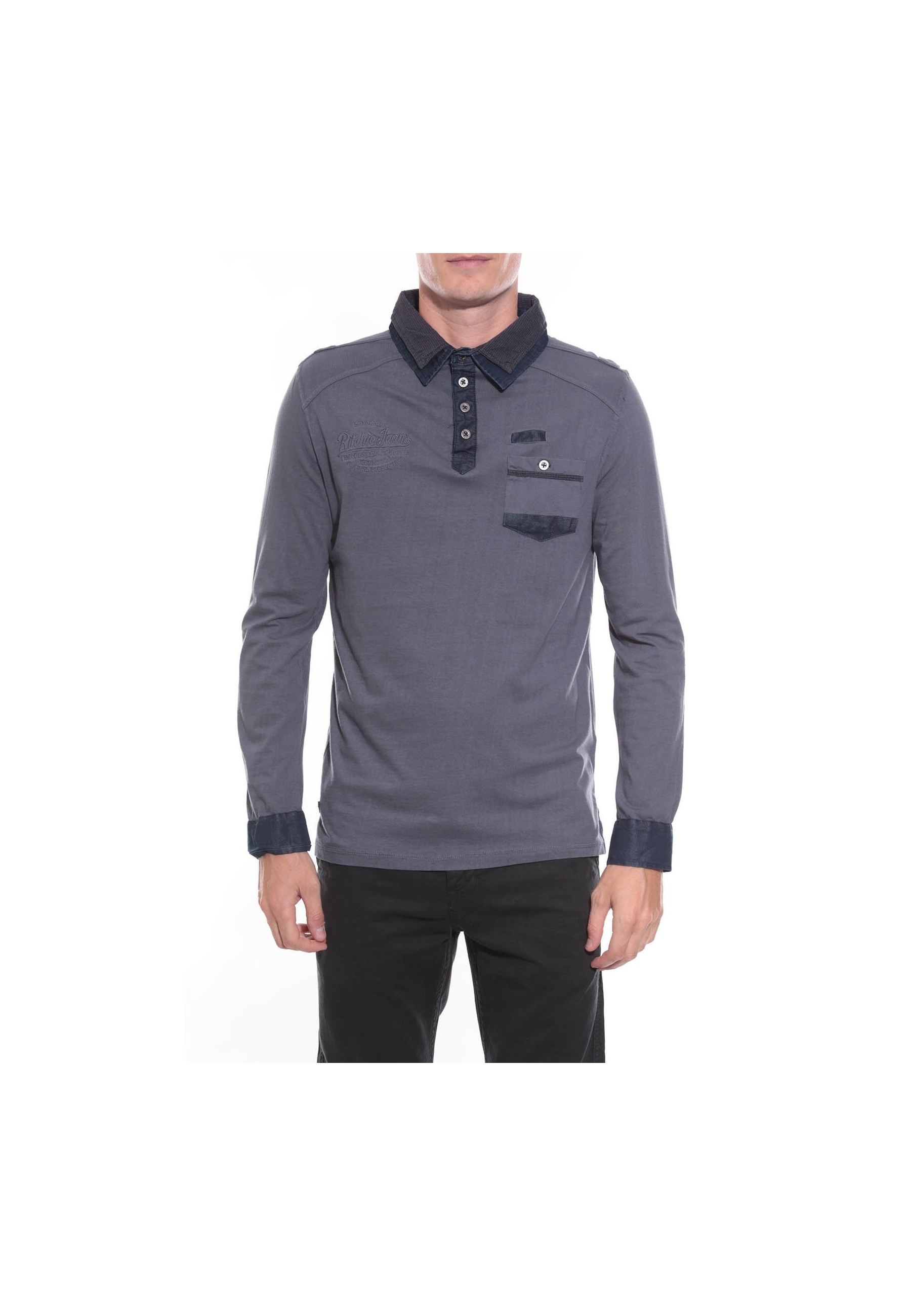 Polo manches longues "esprit détente" en coton jersey avec double col superposé. Col 4 boutons métal. Poche boutonnée côté coeur. Broderie ton sur ton Ritchie coté droit. Poignets boutonnés . Base droite avec fentes latérales. 100% coton. Lavage en machine à 30°.