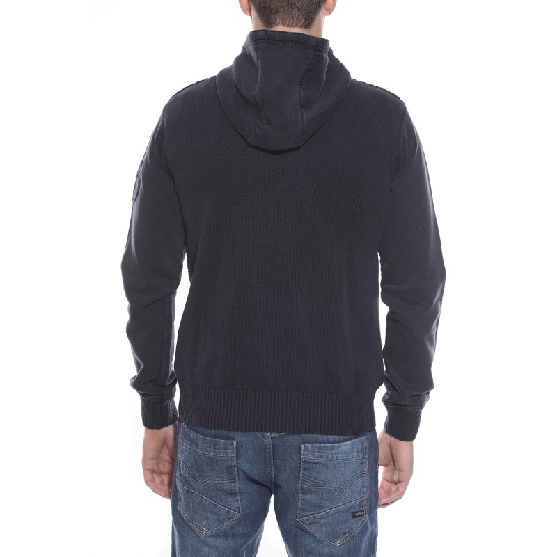 Gilet à capuche pur coton. Fermeture par zip. 2 poches à mains ouvertes. Mélange de grosses mailles côté face et de molleton au dos, capuche et manches. Ecussson siglé Ritchie sur manche gauche. Finitions bords côtes. 100% coton. Lavage en machine à 30°.