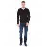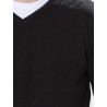 Pull col V uni en acrylique avec empiècement matelassé aux épaules. Finitions bords cotes. 100% acrylique. Lavage en machine à 30°.