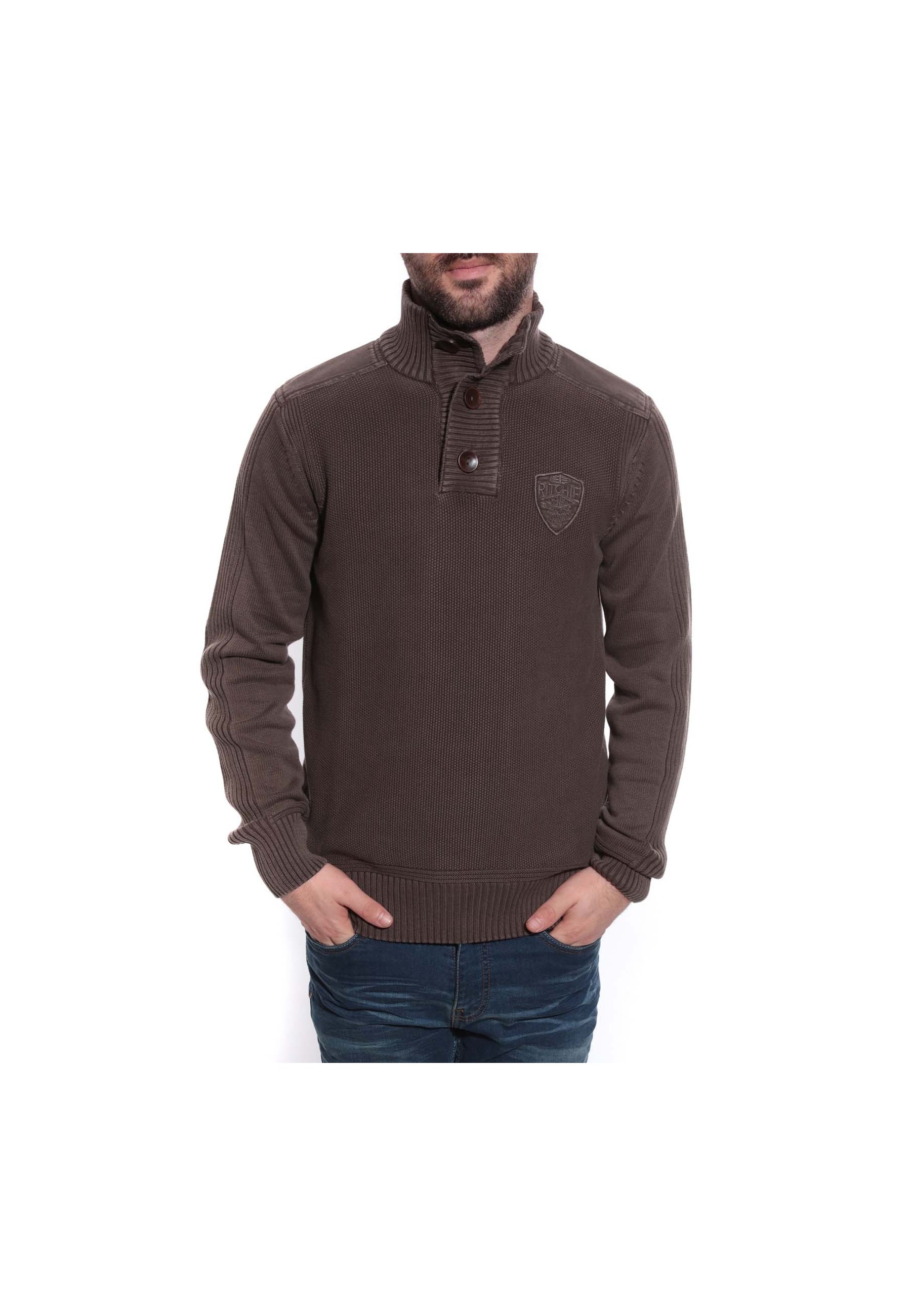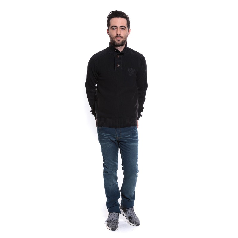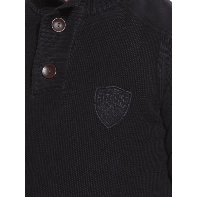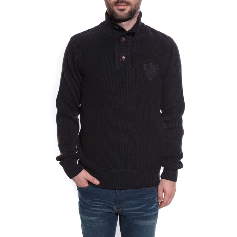 Pull col montant pur coton. Col montant à fermeture boutonnée. Epiècement épaules. Ecusson poitrine ton sur ton. Finitions bords cotes à la base et aux poignets. 100% coton. Lavage en machine à 30°.