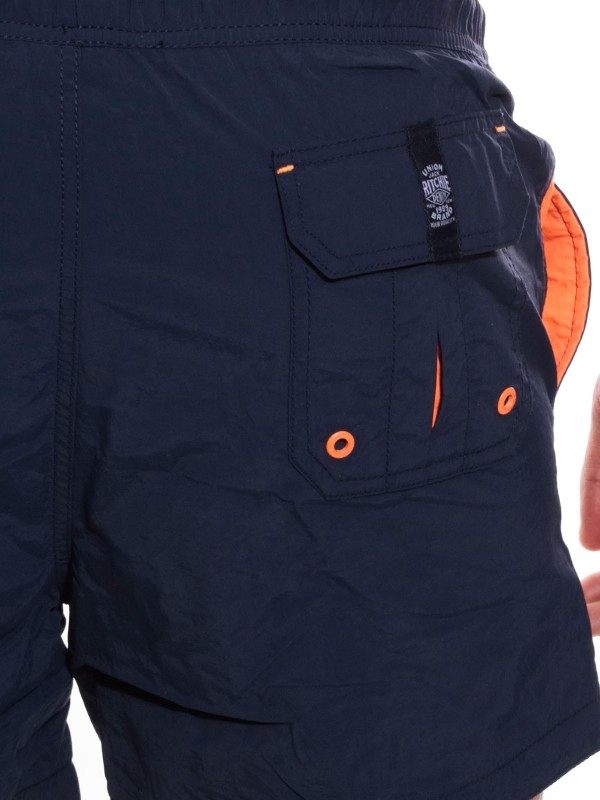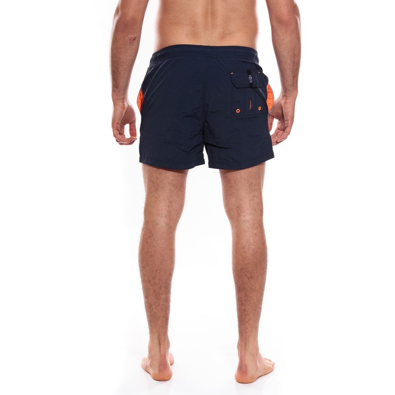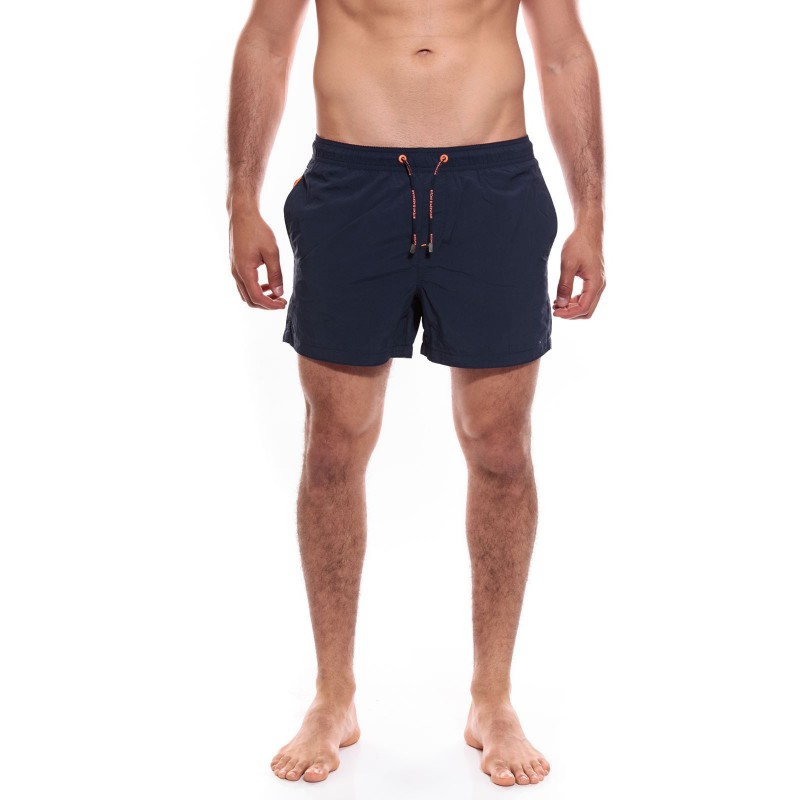 Short de bain très apprécié pour son séchage rapide. Subtil montage avec un ourlet contrastant en finition des jambes, des poches et de la ceinture intérieure. Taille élastiquée avec cordon de serrage extérieur. Slip intérieur en maille filet. 2 poches latérales et 1 poche arrière plaquée avec rabat à fermeture scratch et rivets de vidange. 100% polyamide. Lavage en machine à 30°.
