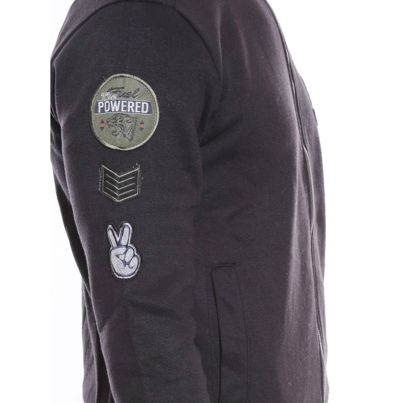 Gilet zippé en molleton, col montant. Esprit sport et mode. 2 poches ouvertes sur les cotés . Finitions bords côtes. Ecusson signé Ritchie sur la poitrine. Jeu de 3 écussons sur la manche droite. Poche fantaisie zippée avec écusson sur la manche gauche. 65% coton, 35% polyester. Lavage en machine à 30°.