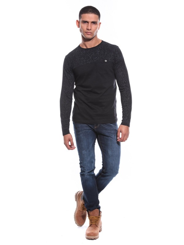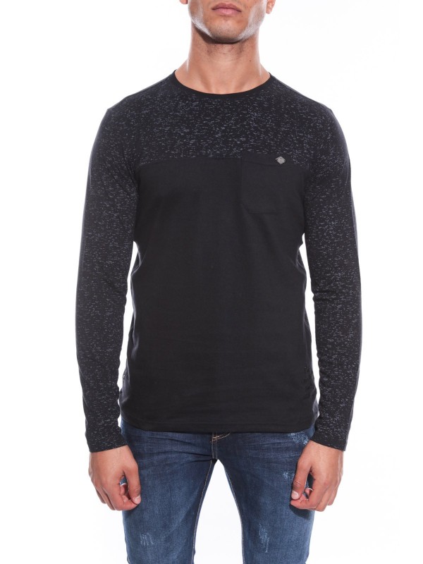 T-shirt manches longues pur coton, col rond, effet zébré et uni. Poche avec médaillon Ritchie sur poitrine. Broderie Ritchie jeans sur le bas. 100% coton. Lavage en machine à 30°.
