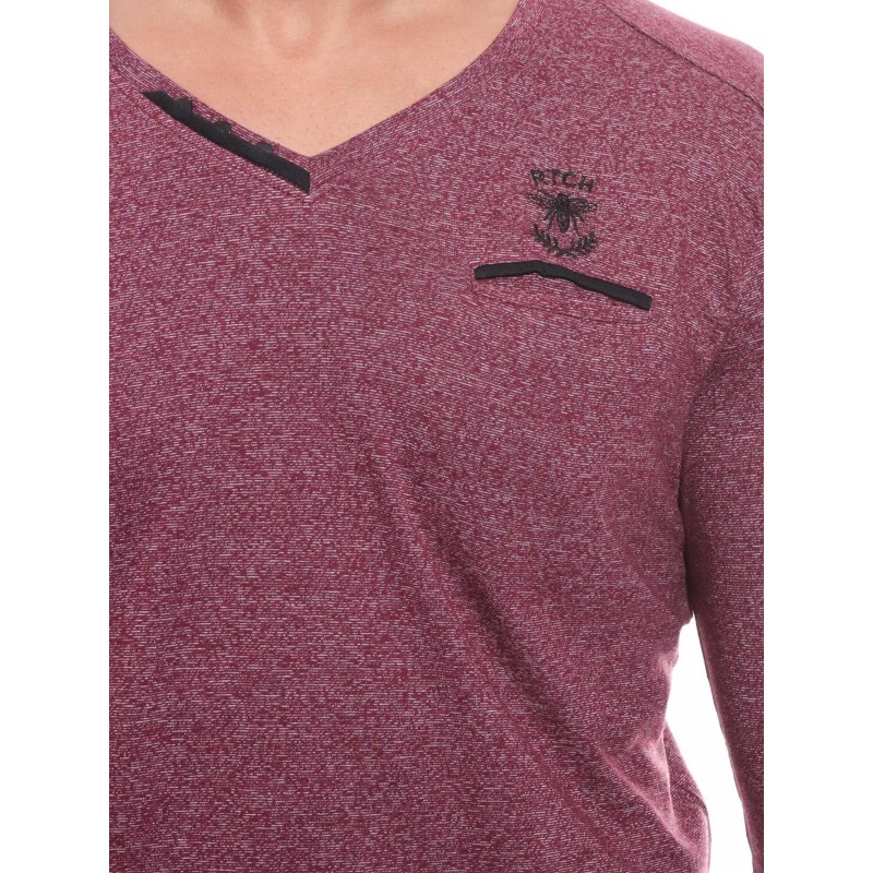 T-shirt manches longues, col V, effet chiné. 1 poche poitrine passepoilée. Boutonnière fantaisie au col. 85% coton, 15% polyester. Lavage en machine à 30°.