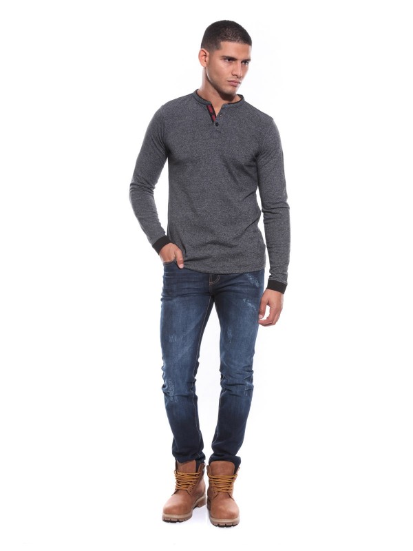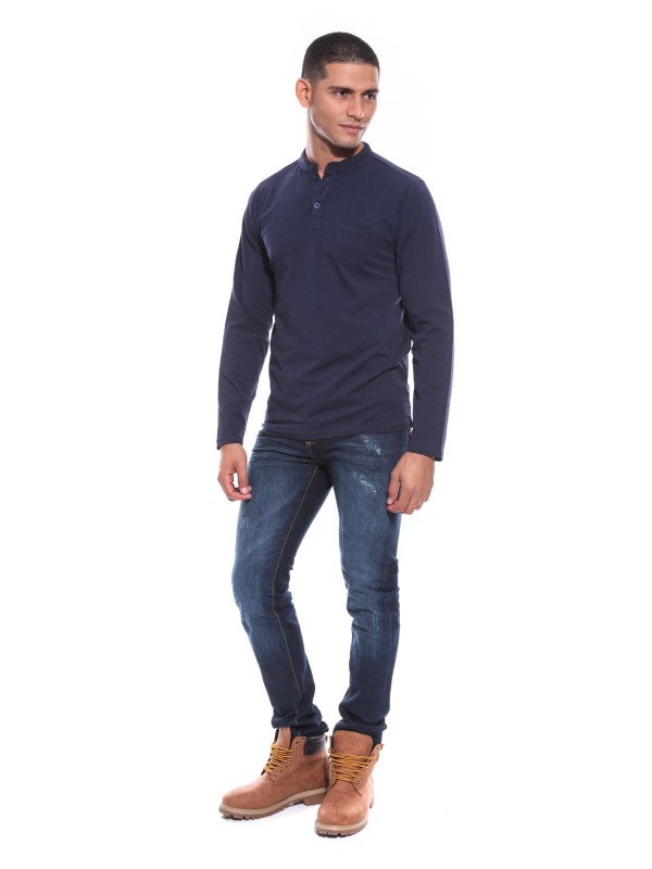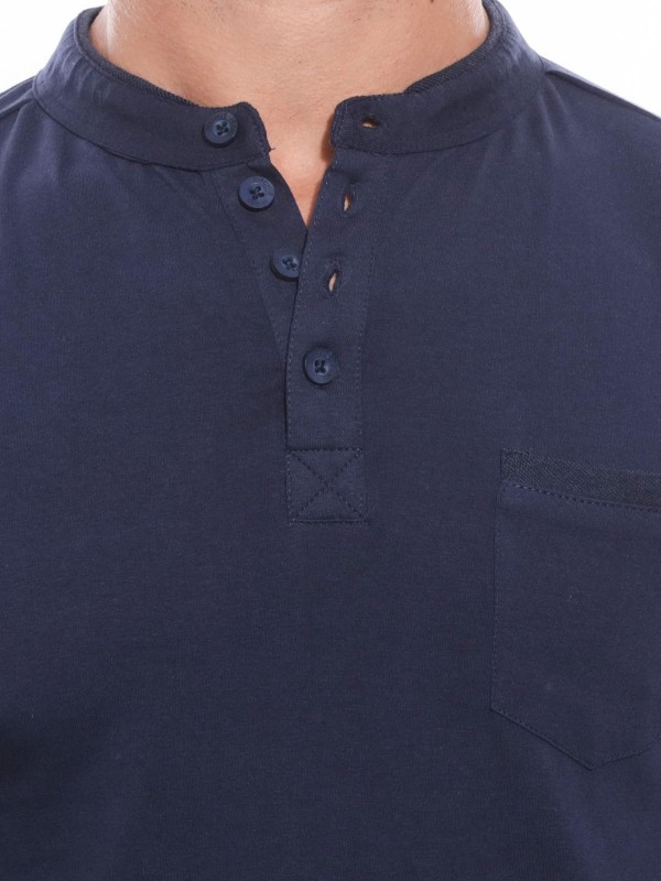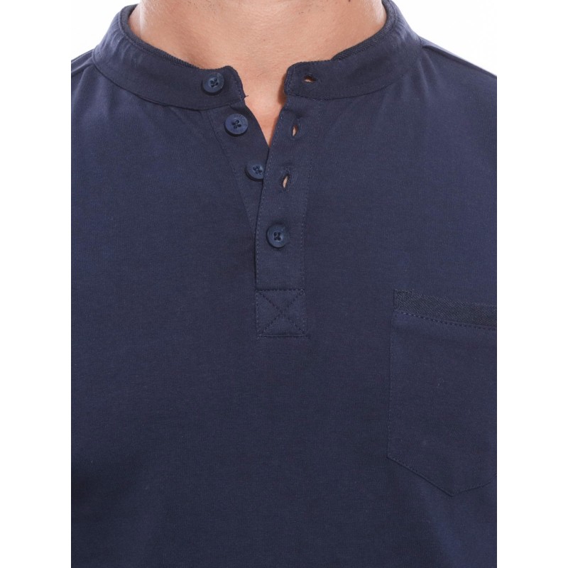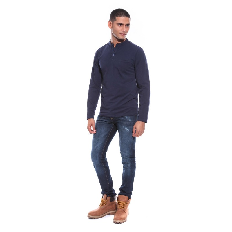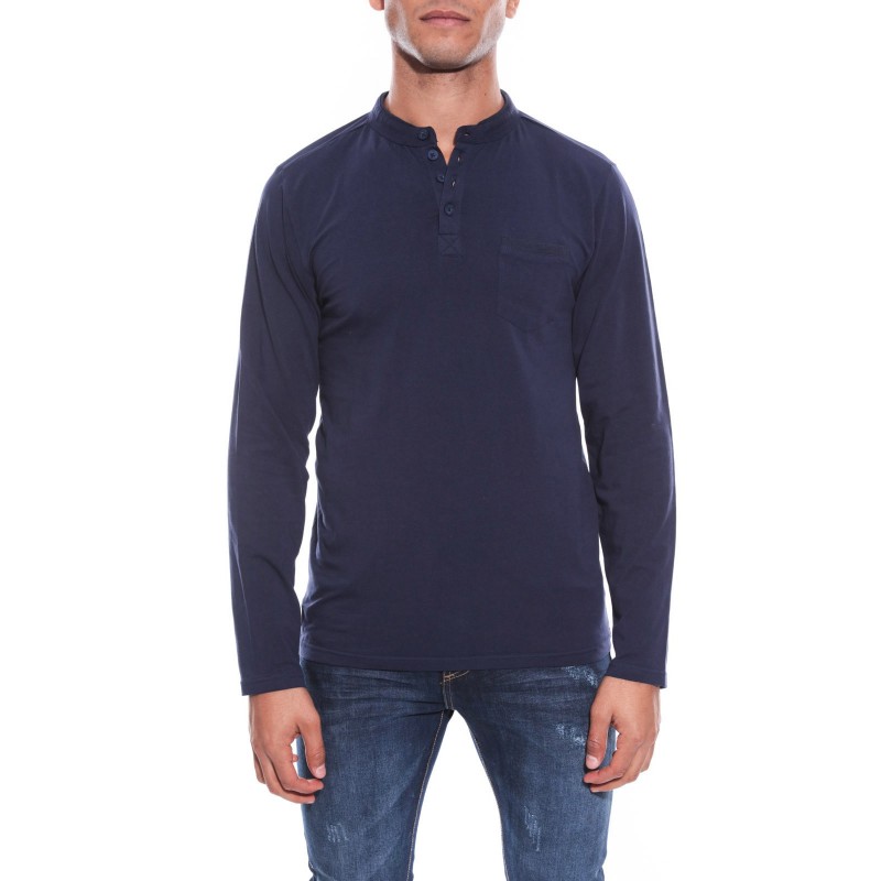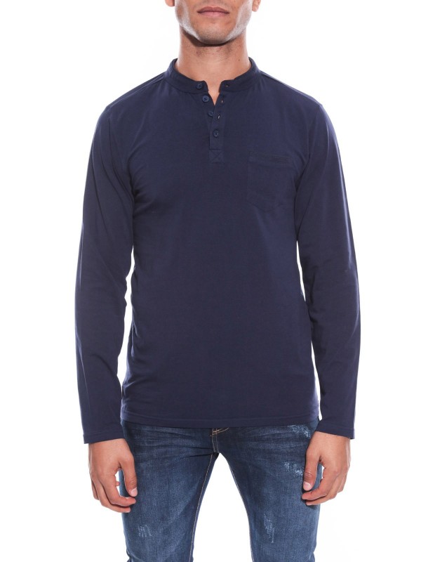 T-shirt manches longues. Encolure tunisienne avec patte de boutonnage, 4 boutons. Poche poitrine. Finition droite aux poignets. On adore sa douceur et sa légèreté! 95% coton, 5% elasthane. Lavage en machine à 30°.