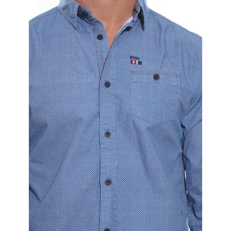 Chemise pur coton à motifs imprimés. Manches longues. Fermeture par boutons. 1 poche poitrine plaquée à fermeture boutonnée. Coupe droite et col classique à pointes libres. Base arrondie. 100% coton. Lavage en machine à 30°.