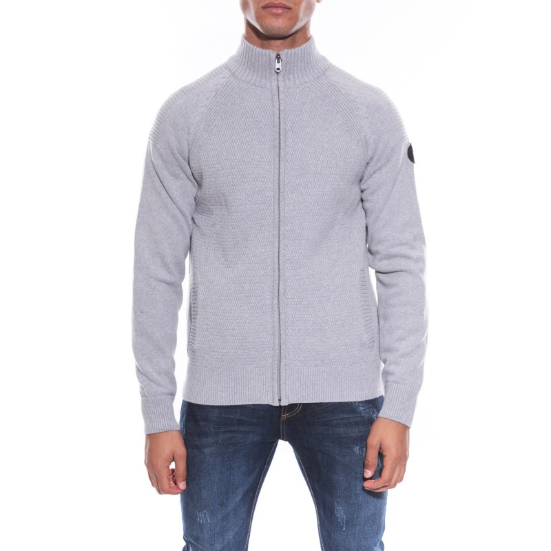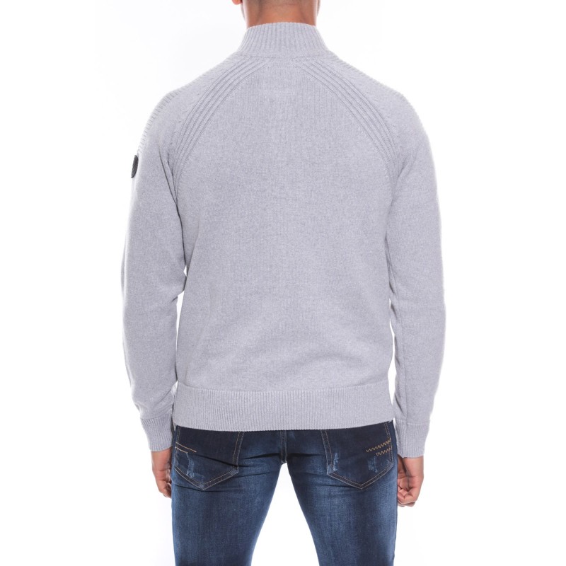 Gilet col montant en pur coton. Mailles piquées devant. Bords côtes au col, sur les côtés et en finition. Patch siglé Ritchie brodé sur bras gauche. 100% coton. Lavage en machine à 30°.