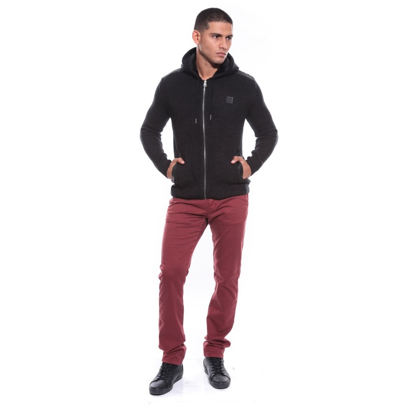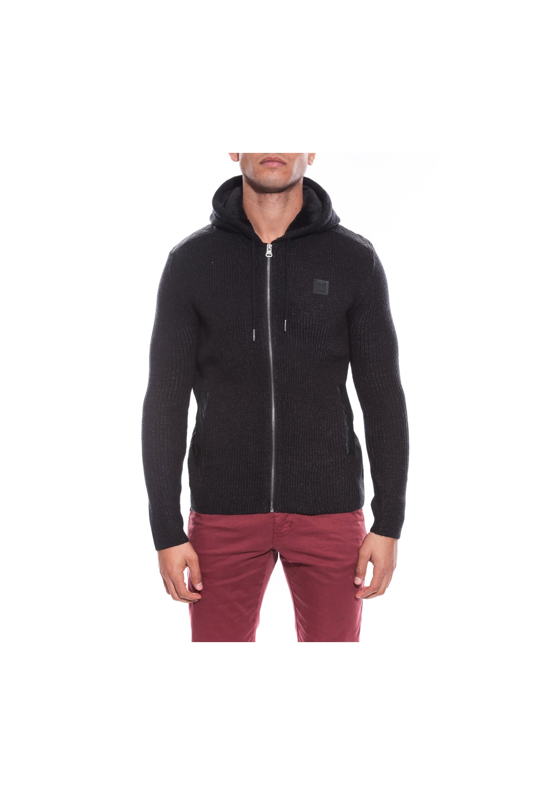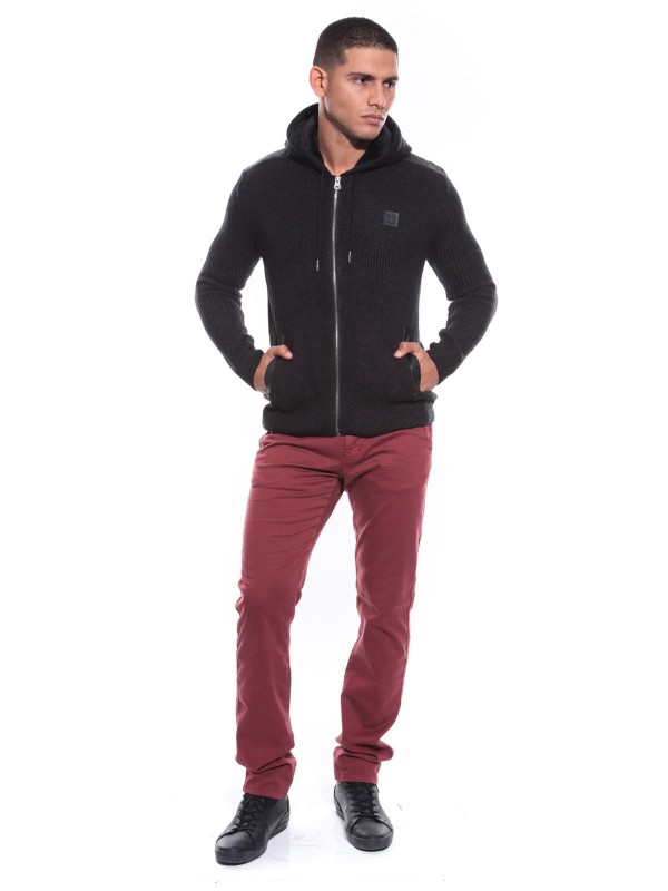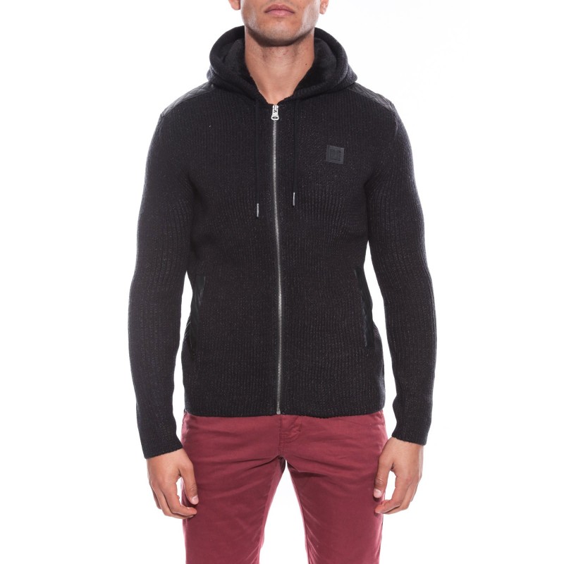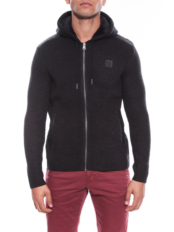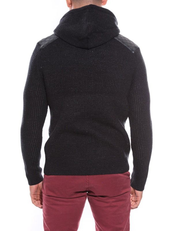 Gilet à capuche avec fermeture zippée. Empiècement en simili cuir aux epaules et aux manches. Doublure capuche en fausse fourrure. Plaque métallique siglée RTCH cousue sur la poitrine. 100% acrylique. Lavage en machine à 30°