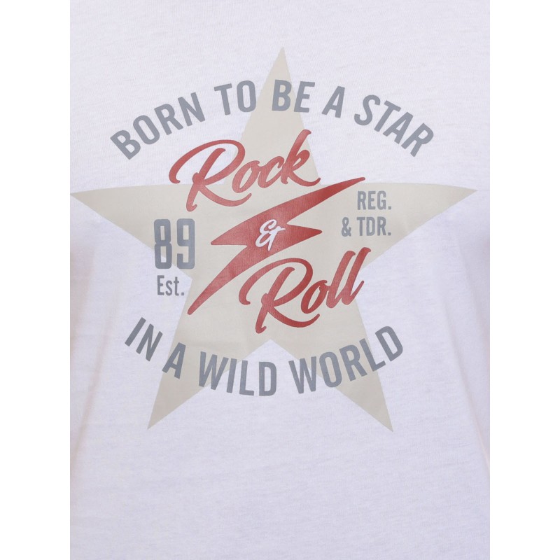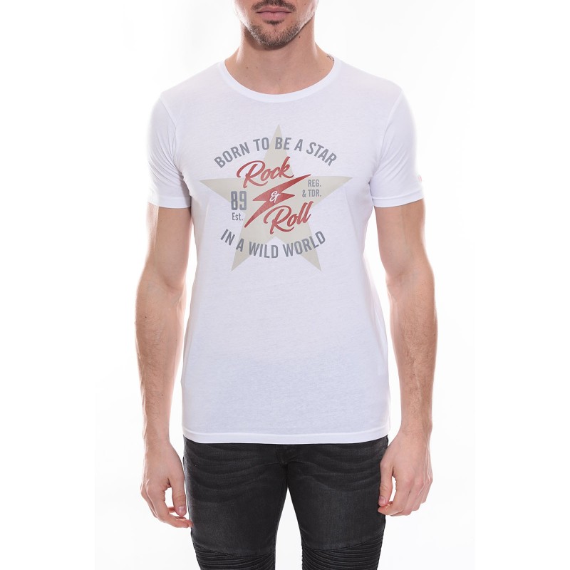 Détails produits Manches courtes Col rond Motif imprimé Coupe droite Composition et entretien 95% coton, 5% viscose Lavage en machine à 30° Conseils taille Le mannequin mesure 1,80 m et porte l'article en taille M En savoir plus >