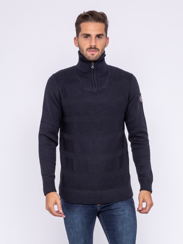 Détails produit Manches longues Col montant zippé Jeu de mailles Bords côtes col, poignets et base Ecusson signé Ritchie cousu sur manche gauche Coupe droite   Composition et entretien 50% coton, 50% acrylique Lavage en... En savoir plus >