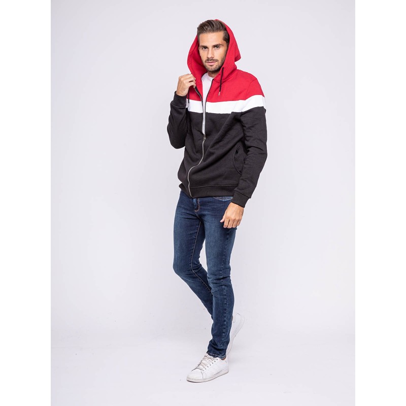 Détails produit Manches longues Capuche, lien de serrage Fermeture zippée Bords côtes base et poignets Tricolore, effet graphique Coupe droite   Composition et entretien 50% coton, 50% polyester Lavage en machine à 30°... En savoir plus >