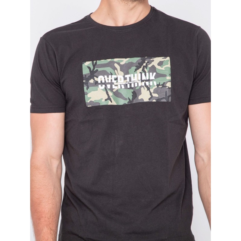 Ce tee shirt col rond Ritchie Jeans en coton léger et confortable se distingue par son inscription imprimée "Over think" sur fond contrasté au motif army qui lui confère une touche graphique tendance.